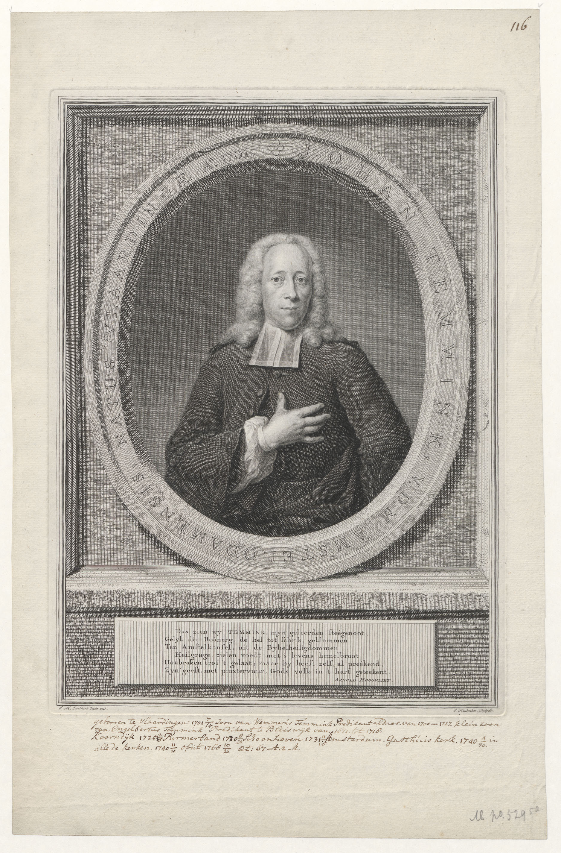 Portret van Johan Temmink (1701-1768), predikant te Amsterdam, Hoorndijk, Purmerland, Schoonhoven