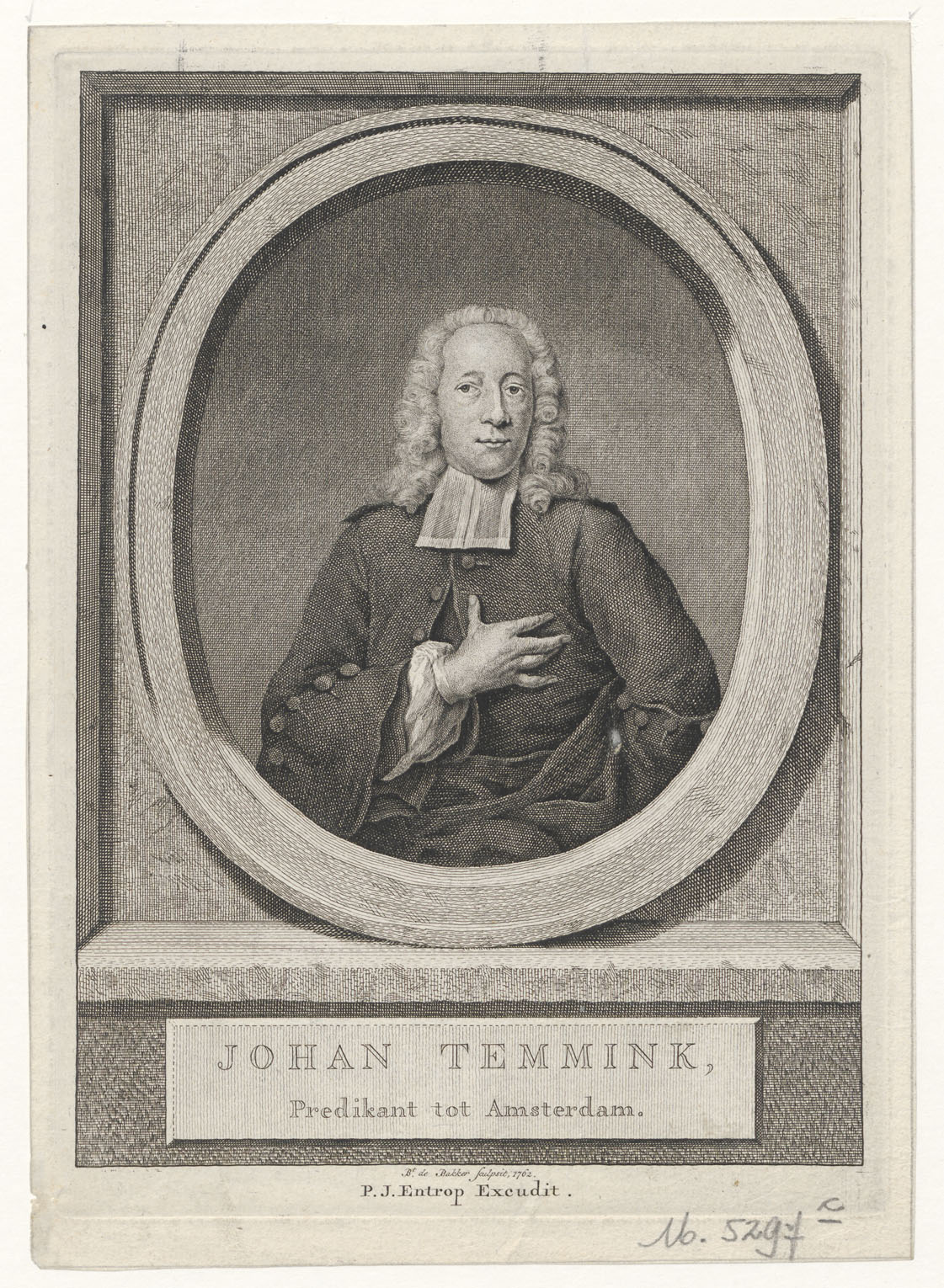 Portret van Johan Temmink (1701-1768), predikant te Amsterdam, Hoorndijk, Purmerland, Schoonhoven