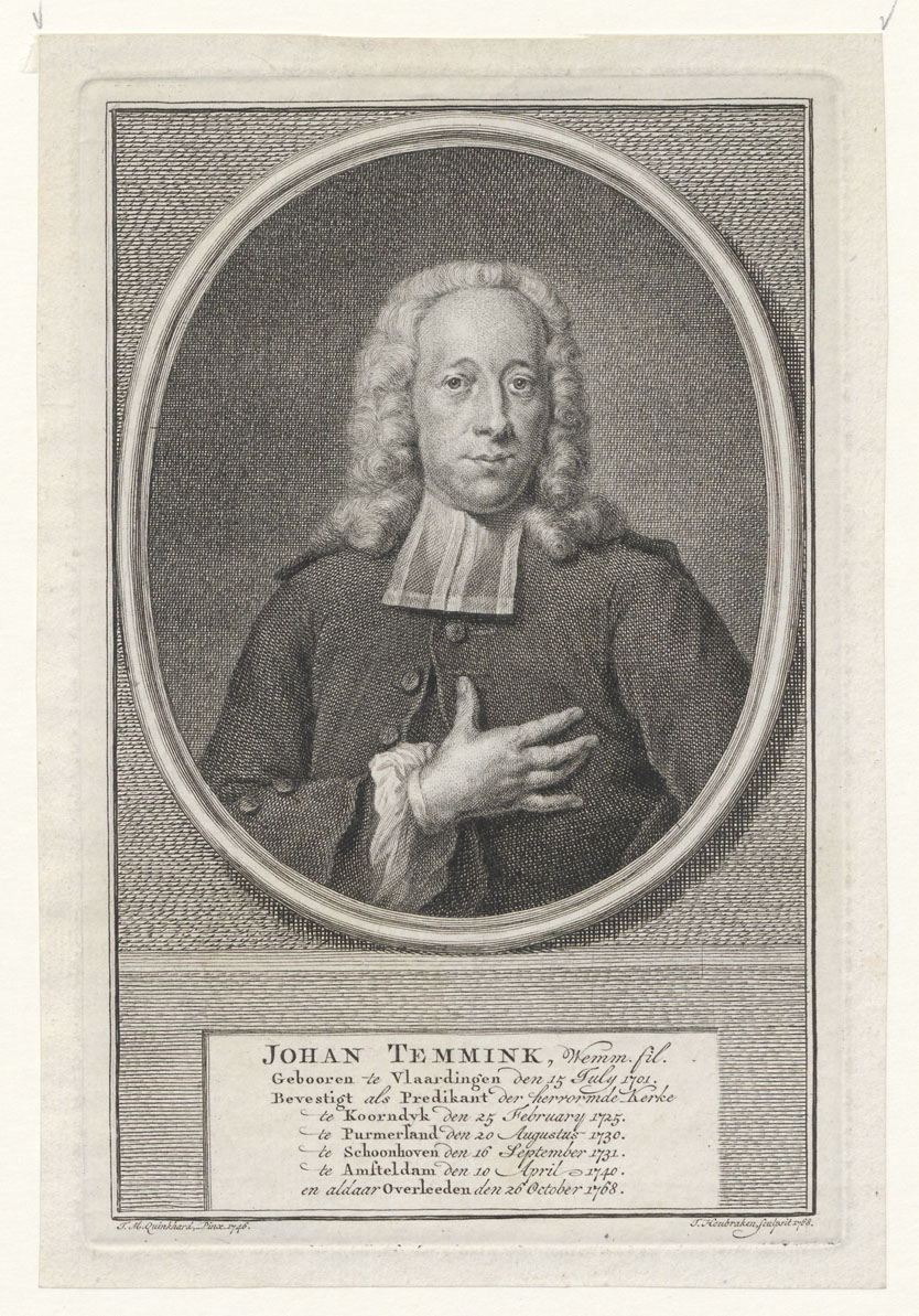 Portret van Johan Temmink (1701-1768), predikant te Amsterdam, Hoorndijk, Purmerland, Schoonhoven