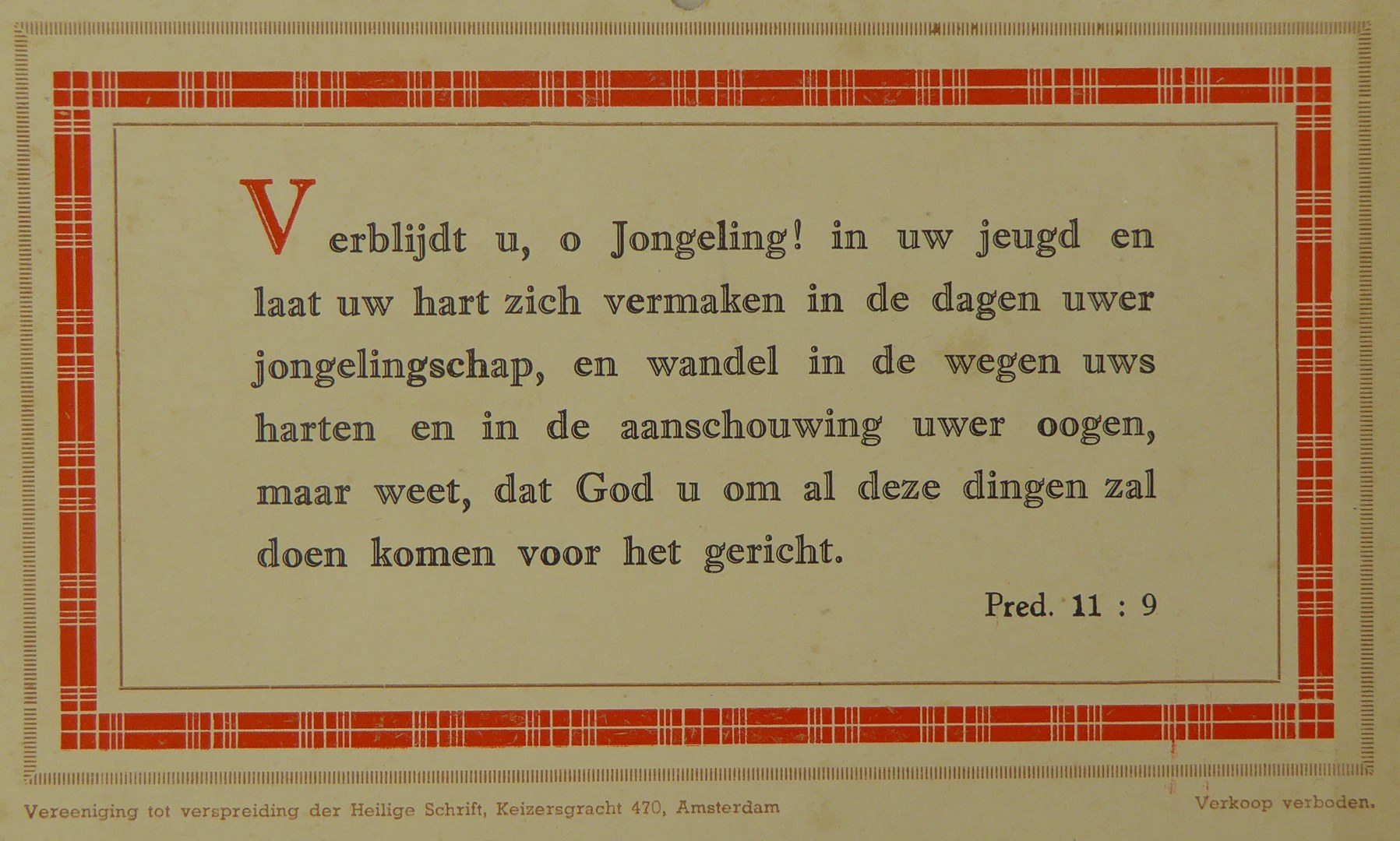 Verblijdt u, o jongeling! in uw jeugd ... (Pred.11:9)