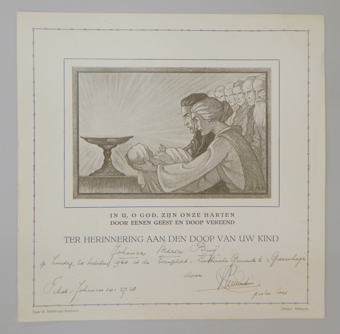 Doopcertificaat uit lutherse kerk van Johanna Maria Buij, met ouders die kind ten doop houden