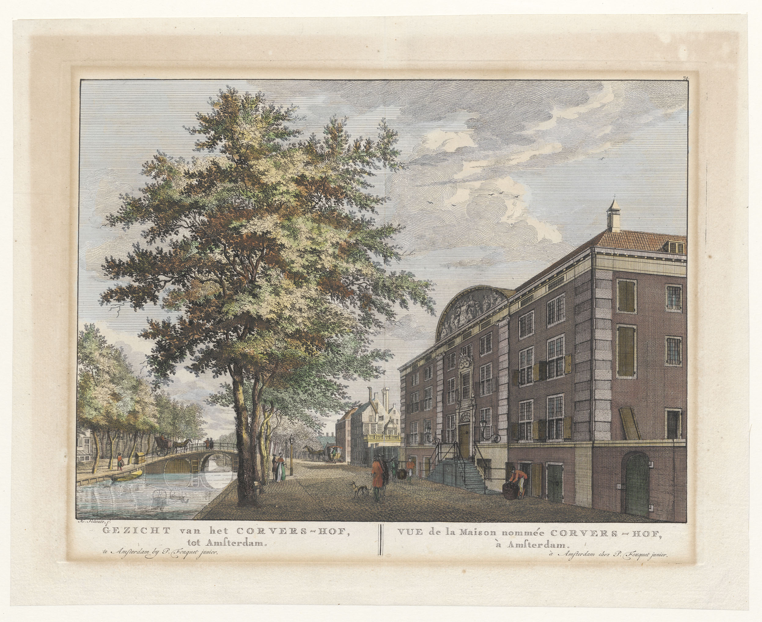 Amsterdam, gezicht van het Corvers-hof, ingekleurd
