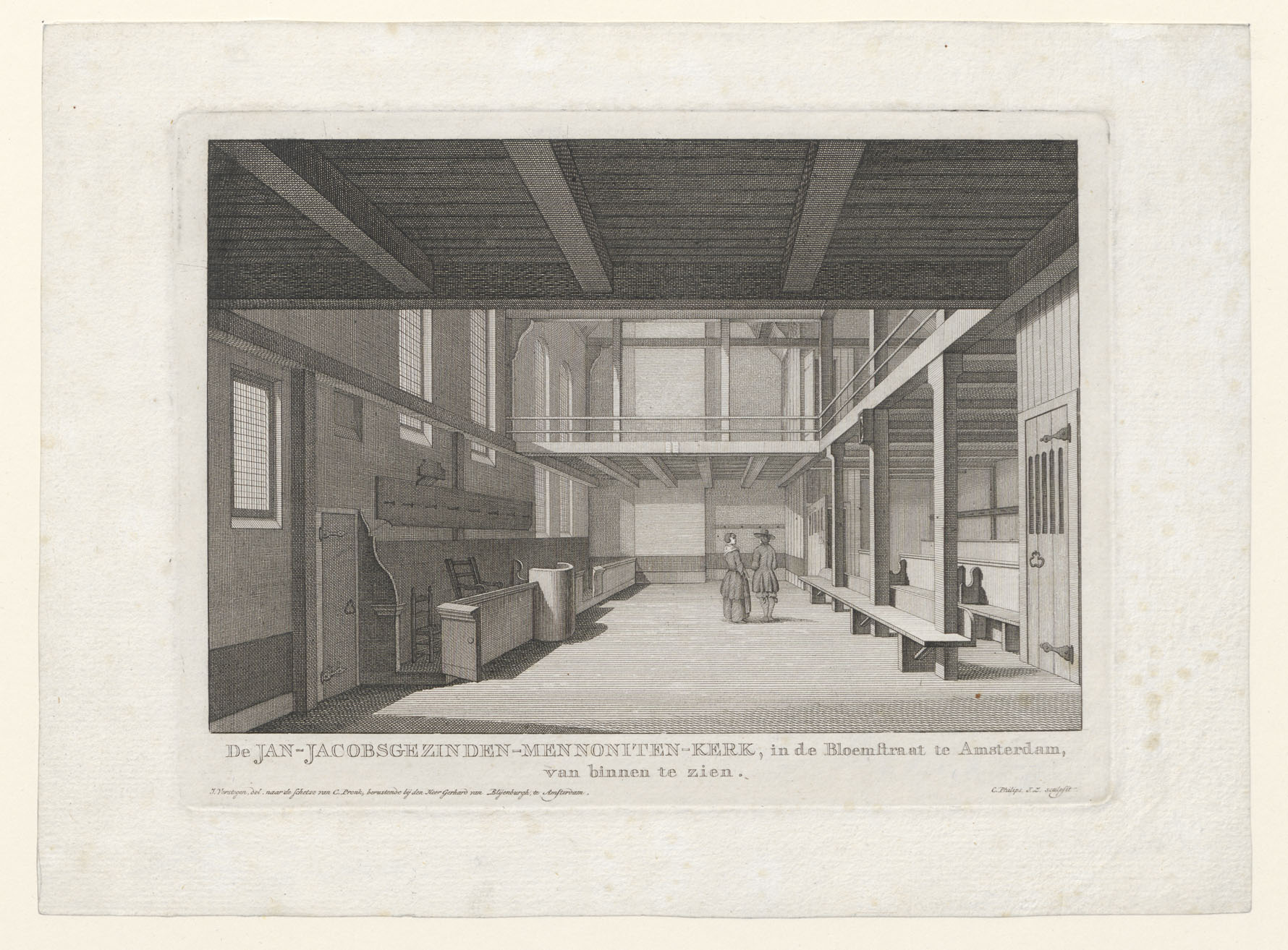 Interieur van de Jan-Jacobsgezinde Mennonietenkerk te Amsterdam