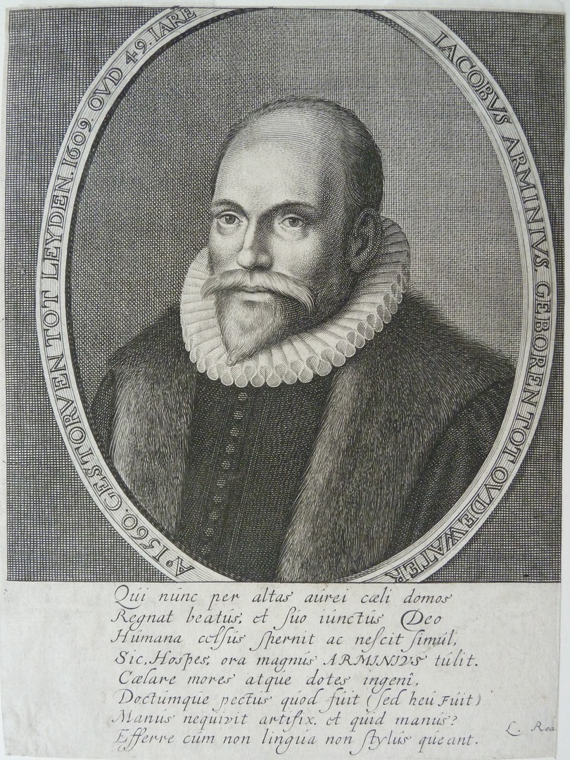 Portret van Jacobus Arminius (1560-1609), met achtregelige Latijnse tekst, professor te Leiden