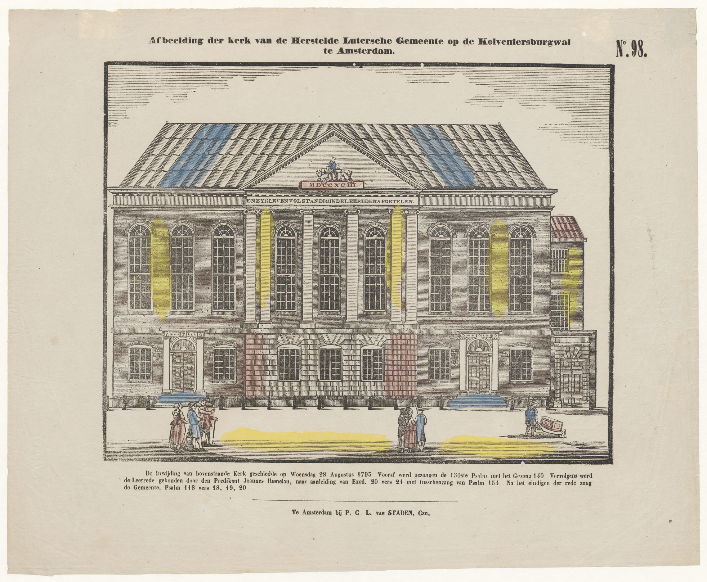 Kerk van de Herstelde Lutersche Gemeente op de Kolveniersburgwal te Amsterdam, nr. 98, ingekleurd