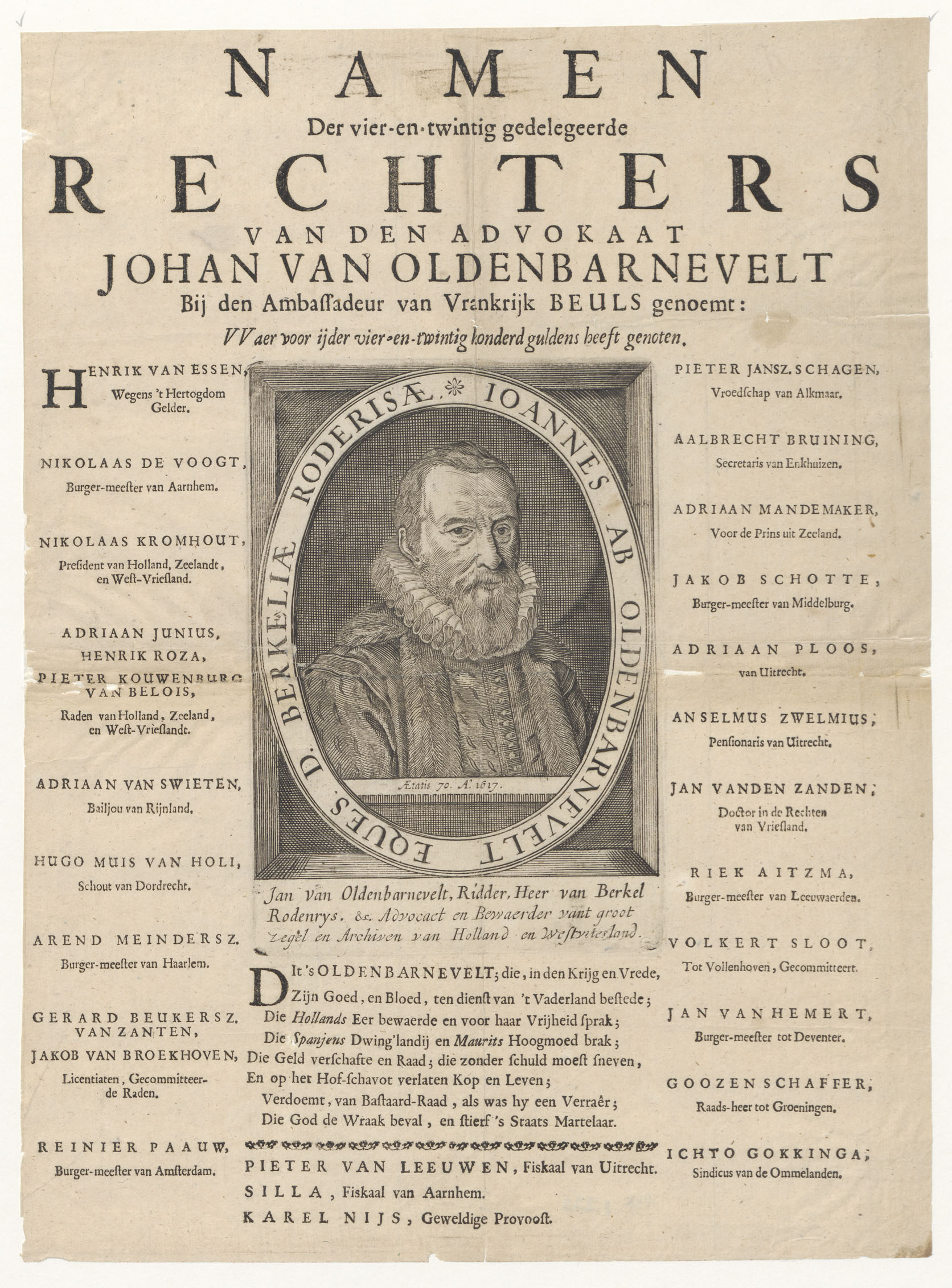 Namen der vier-en-twintig gedelegeerde rechters ... advokaat Johan van Oldenbarnevelt, met portret