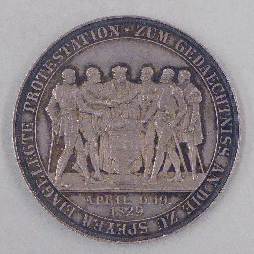 Penning met afbeeldingen en namen "Herz. Ernst v. Lün ... Wolfg. v. Anh.", kz. "... April D. 19 1829"
