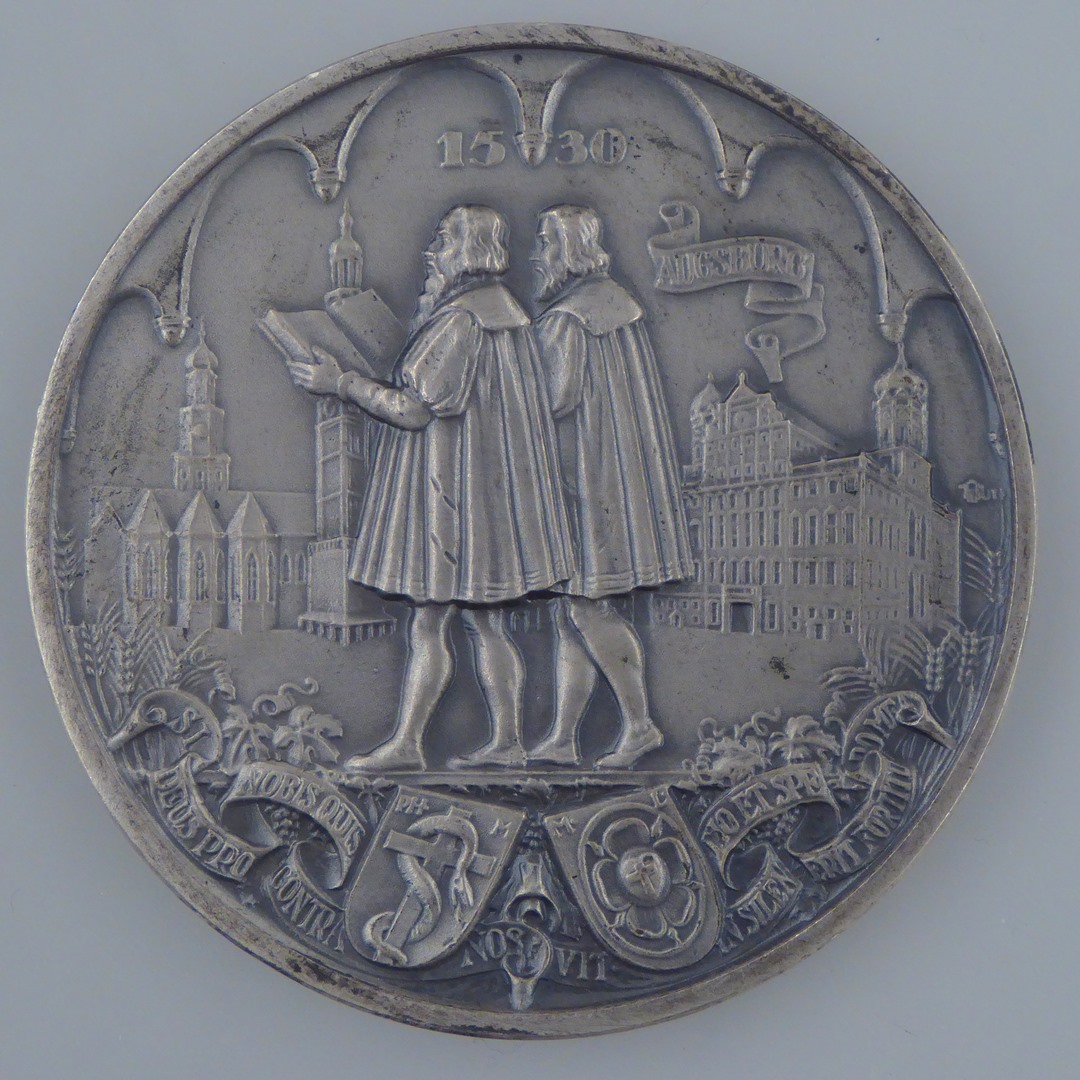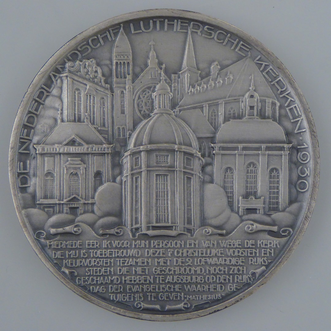 Slotgedachtenispenning Ronde Lutherse Kerk te Amsterdam, vijf andere kerken, kz. Luther en Melanchton