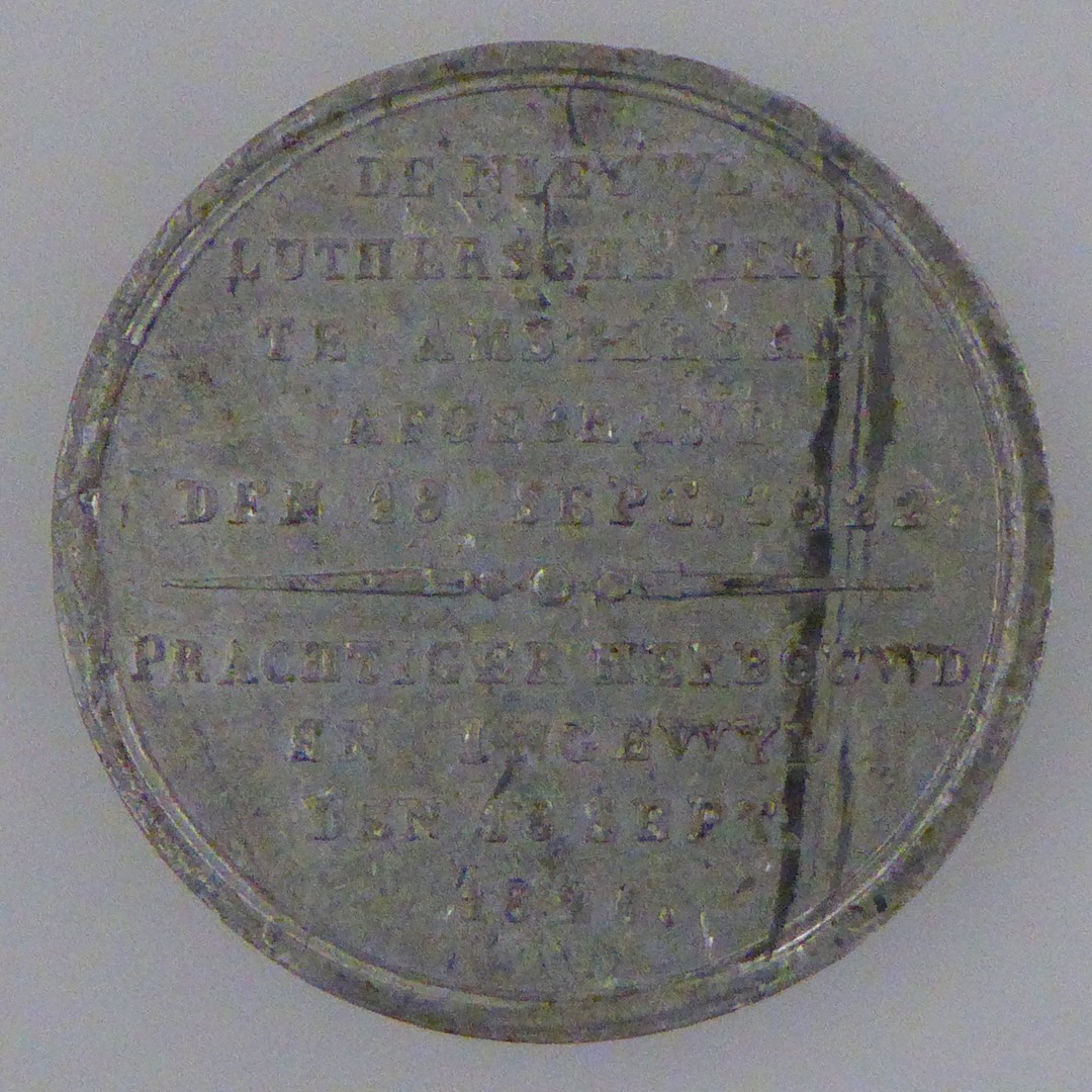 Penning, borstbeeld Luther, tekst, kz. met "De Nieuwe Luthersche ... 18 sept. 1826"