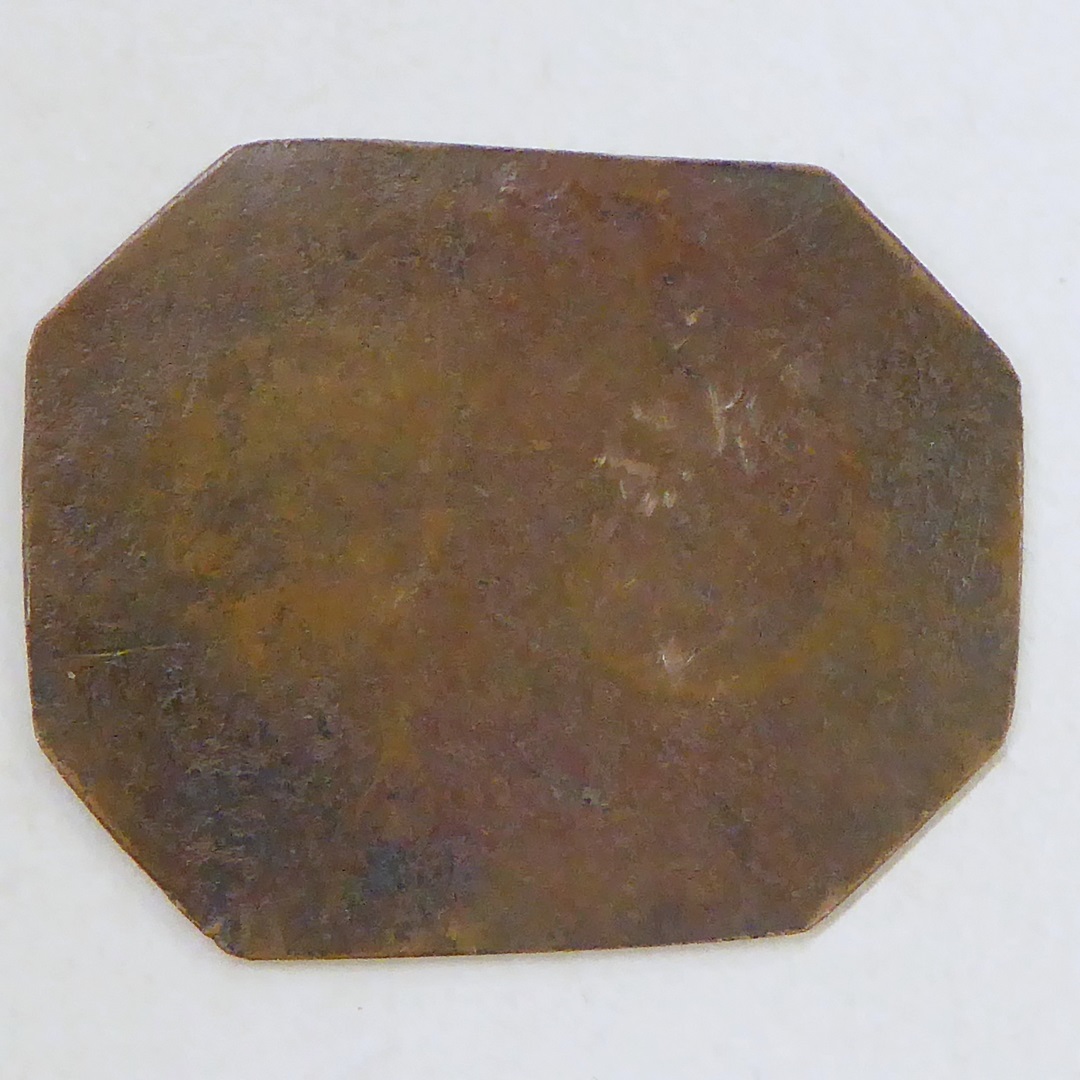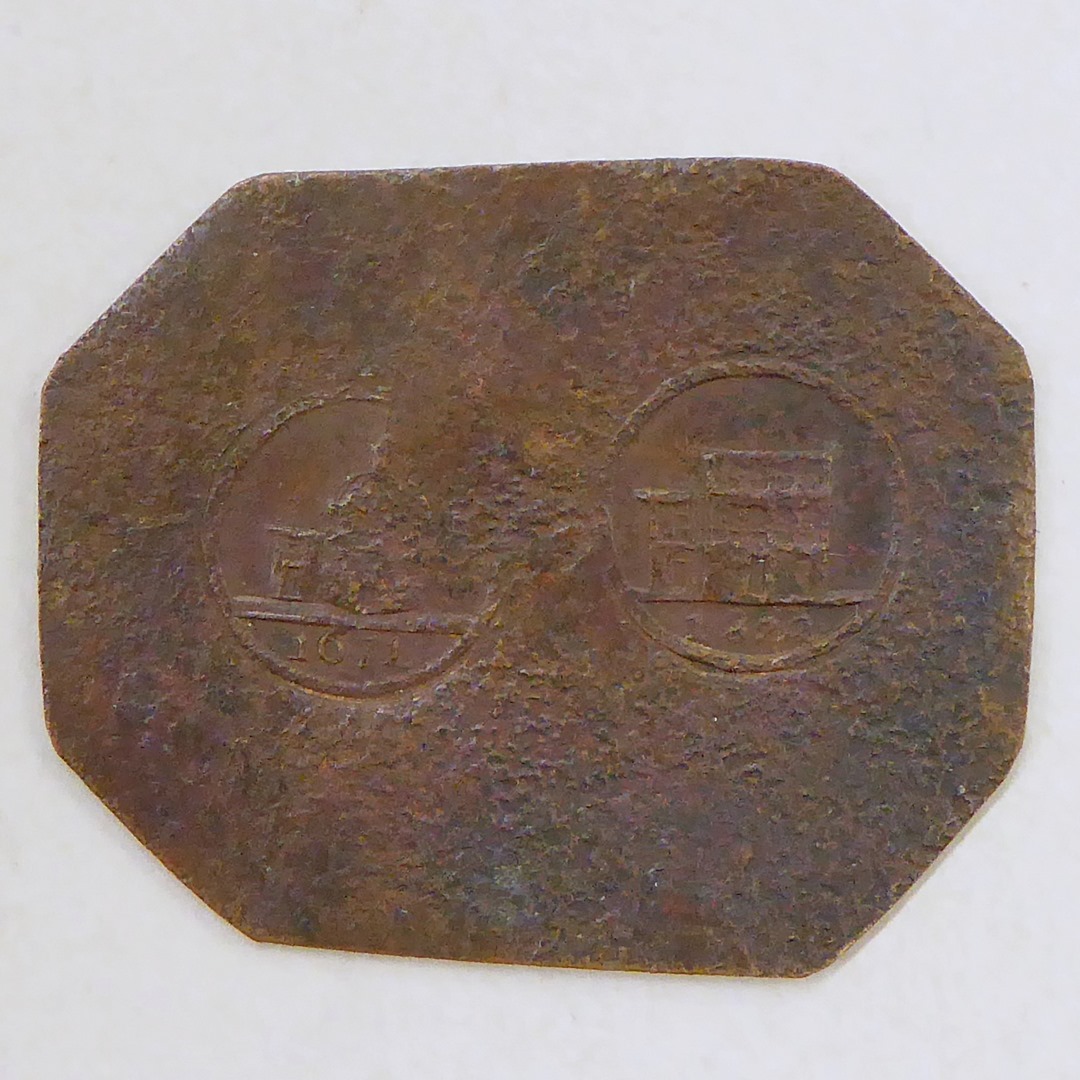 Plaatje koper uit dak van Ronde Lutherse Kerk te Amsterdam na de brand, met stempels "1671 1822"