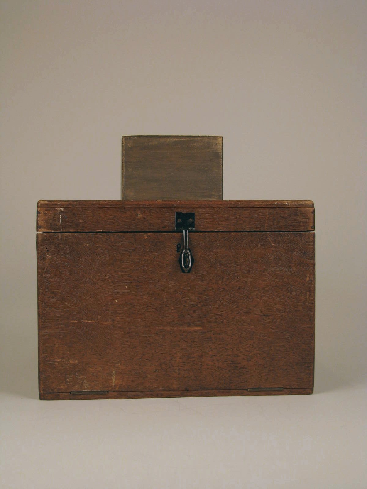 Houten kist bekleed met groen vilt voor doopvont SPKK m239a