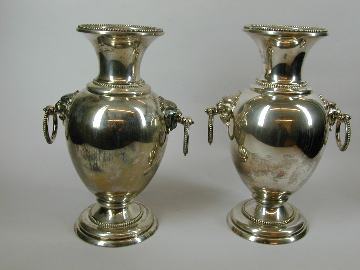 Offervaas van avondmaalsstel met afschroefbare bovenkant, twee leeuwenkoppen met draagringen met parelrand