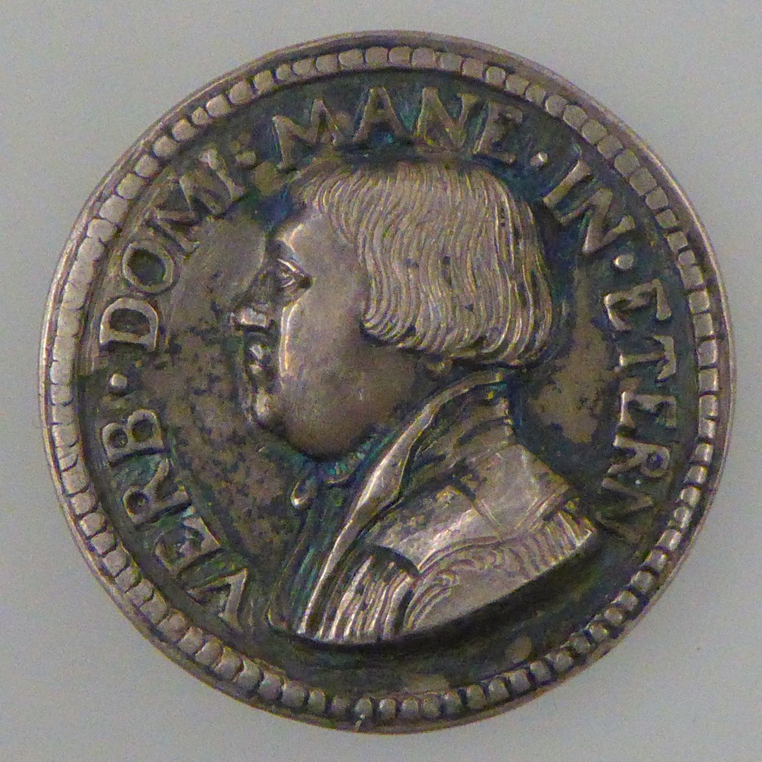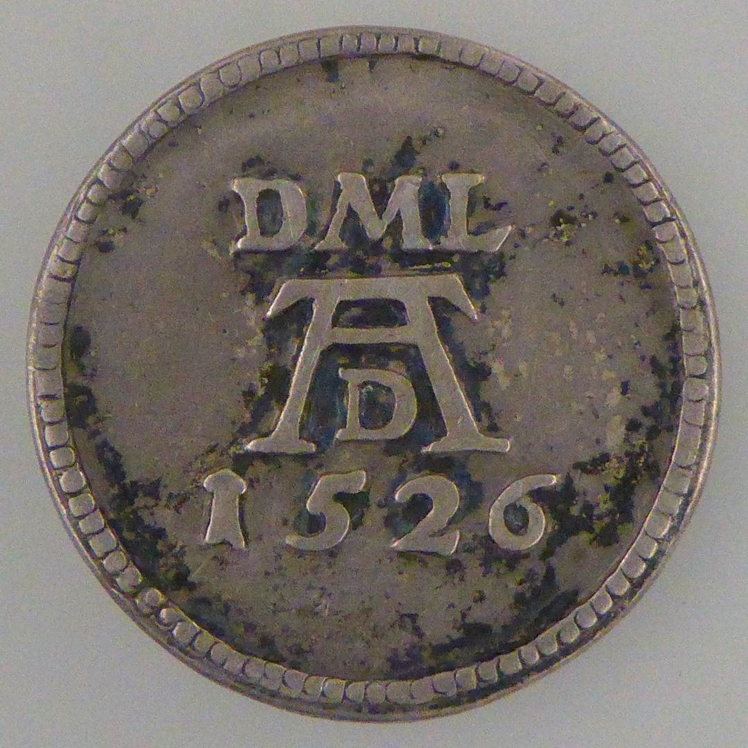 Penning met portret van Luther met randschrift, kz. Dürer-monogram met "DML" en "1526"