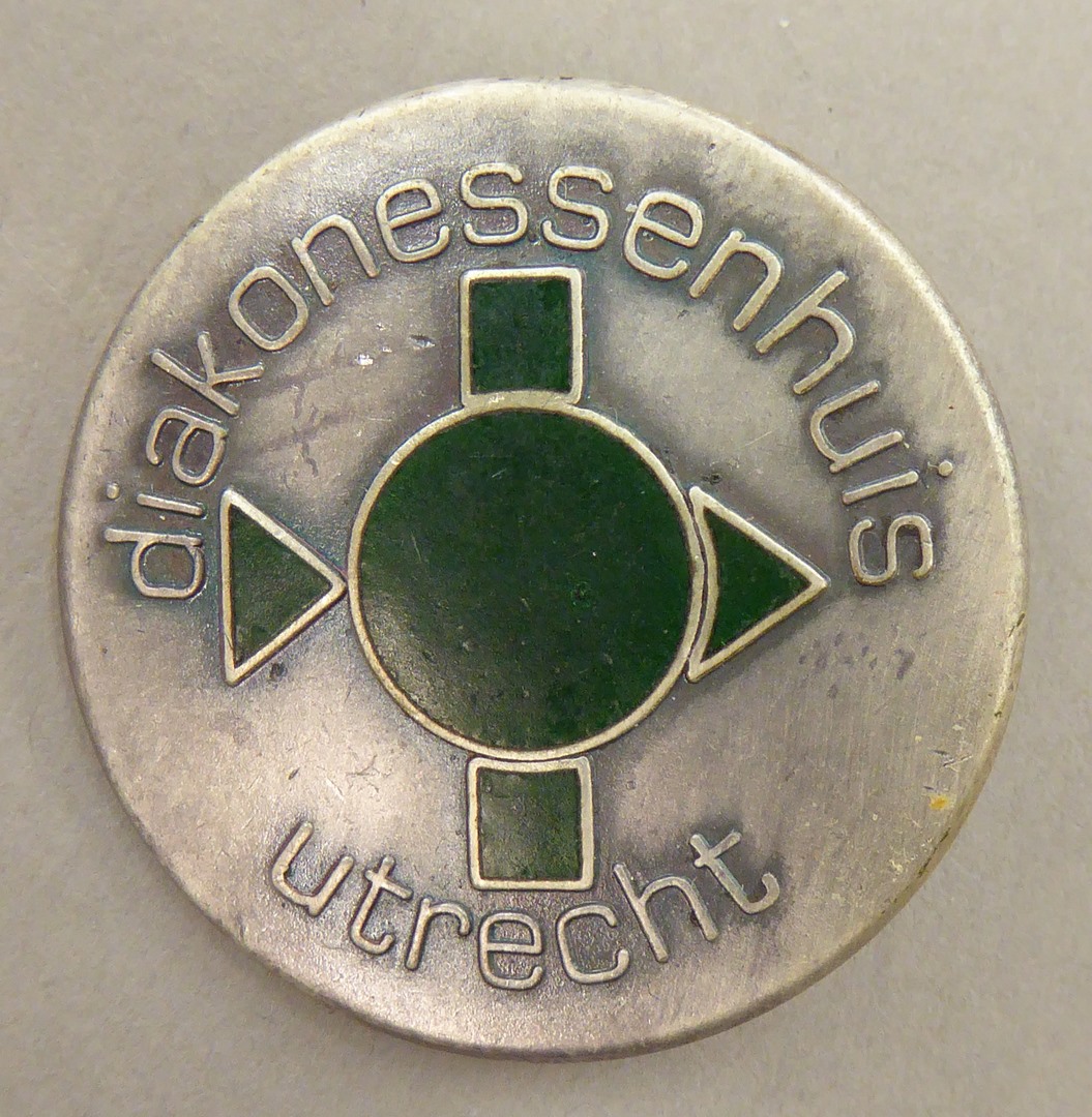Speldje, Diakonessenhuis Utrecht, met gestileerde duif op kruis (groen)