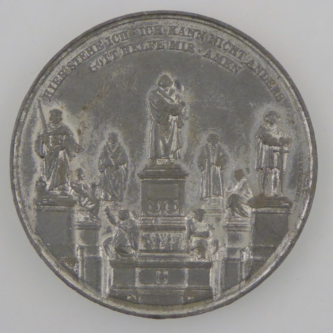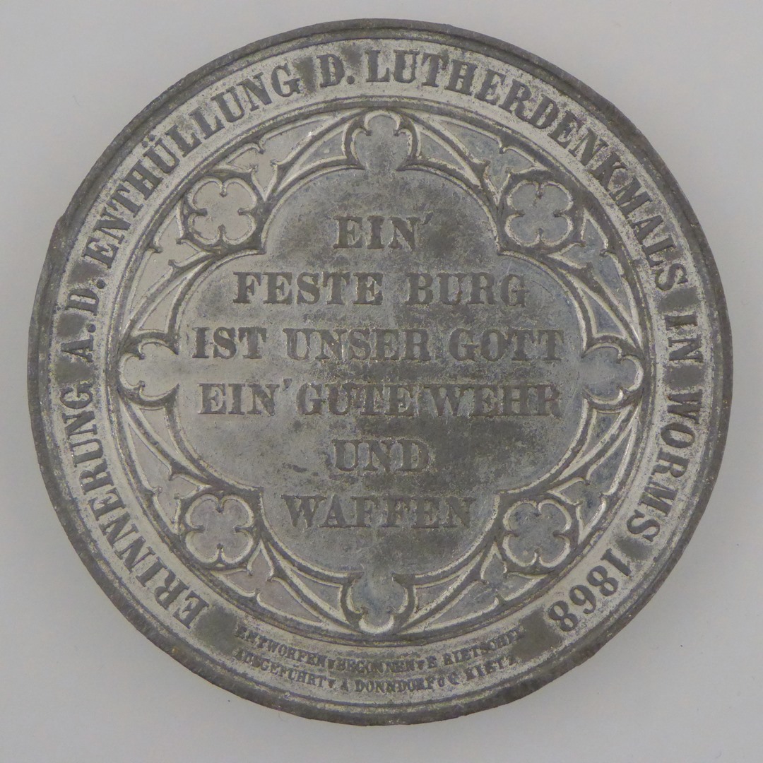 Gedenkpenning onthulling Luthermonument in Worms 1868, kz. met "Ein feste Burg ist unser Gott ..."