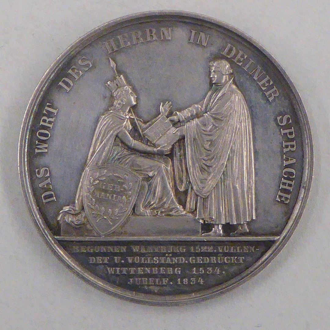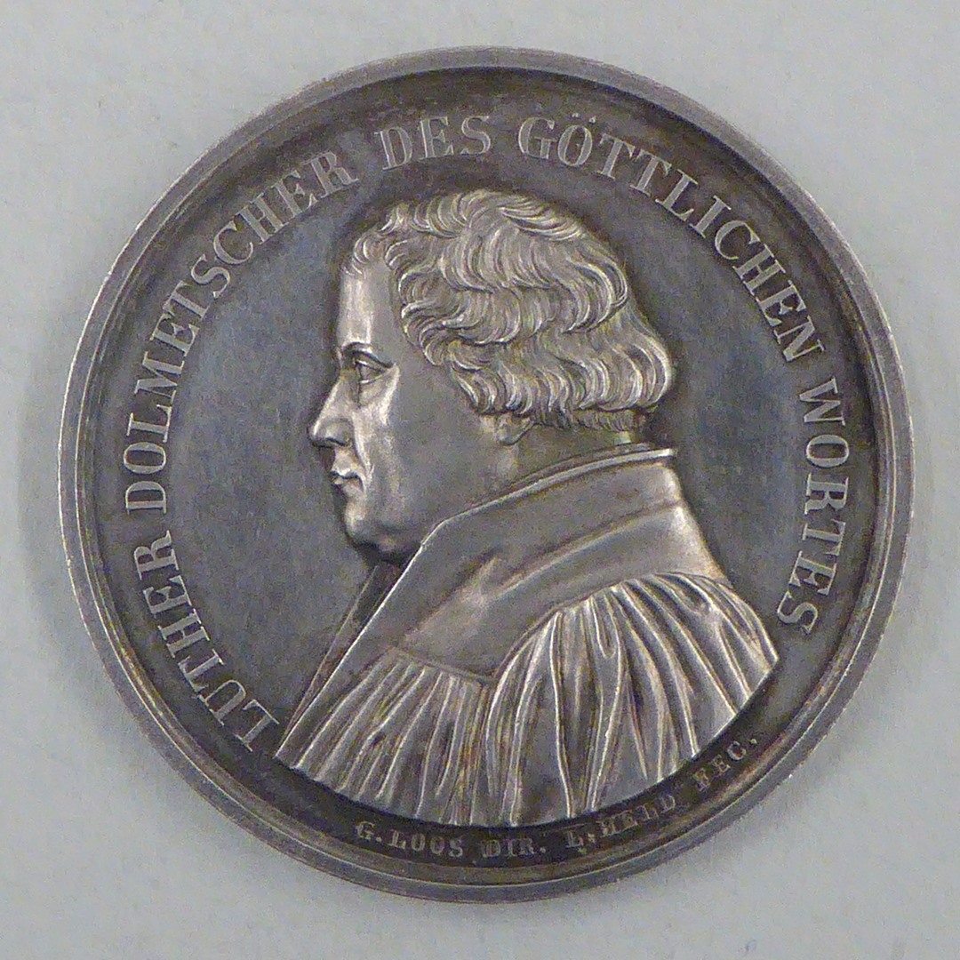 Penning met portret Luther, met "Luther Dolmetscher des Göttlichen Wortes", kz. Luther