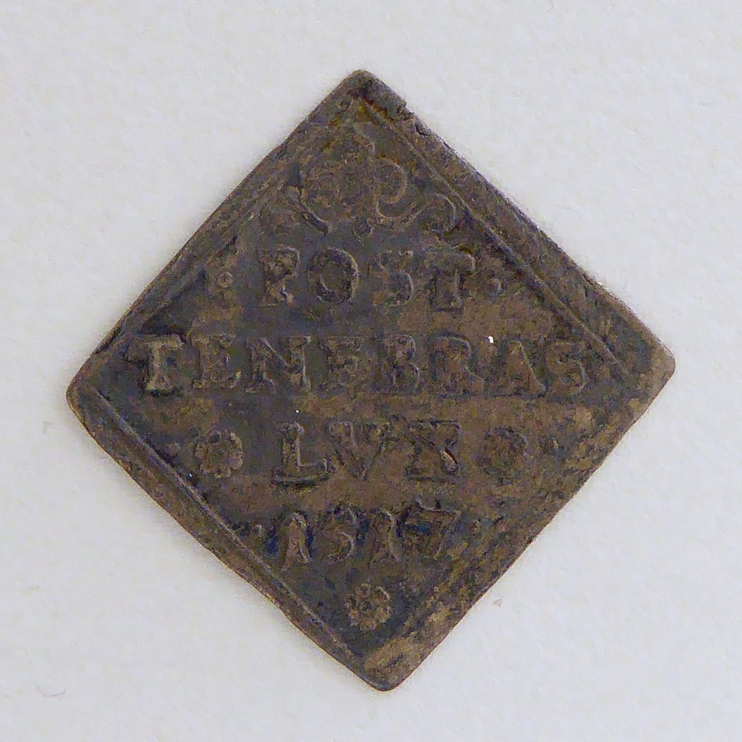 Gedenkpenning, ruitvormig, "Post. tenebras lux 1517" , kz. "Iubilaeum argentoratense"