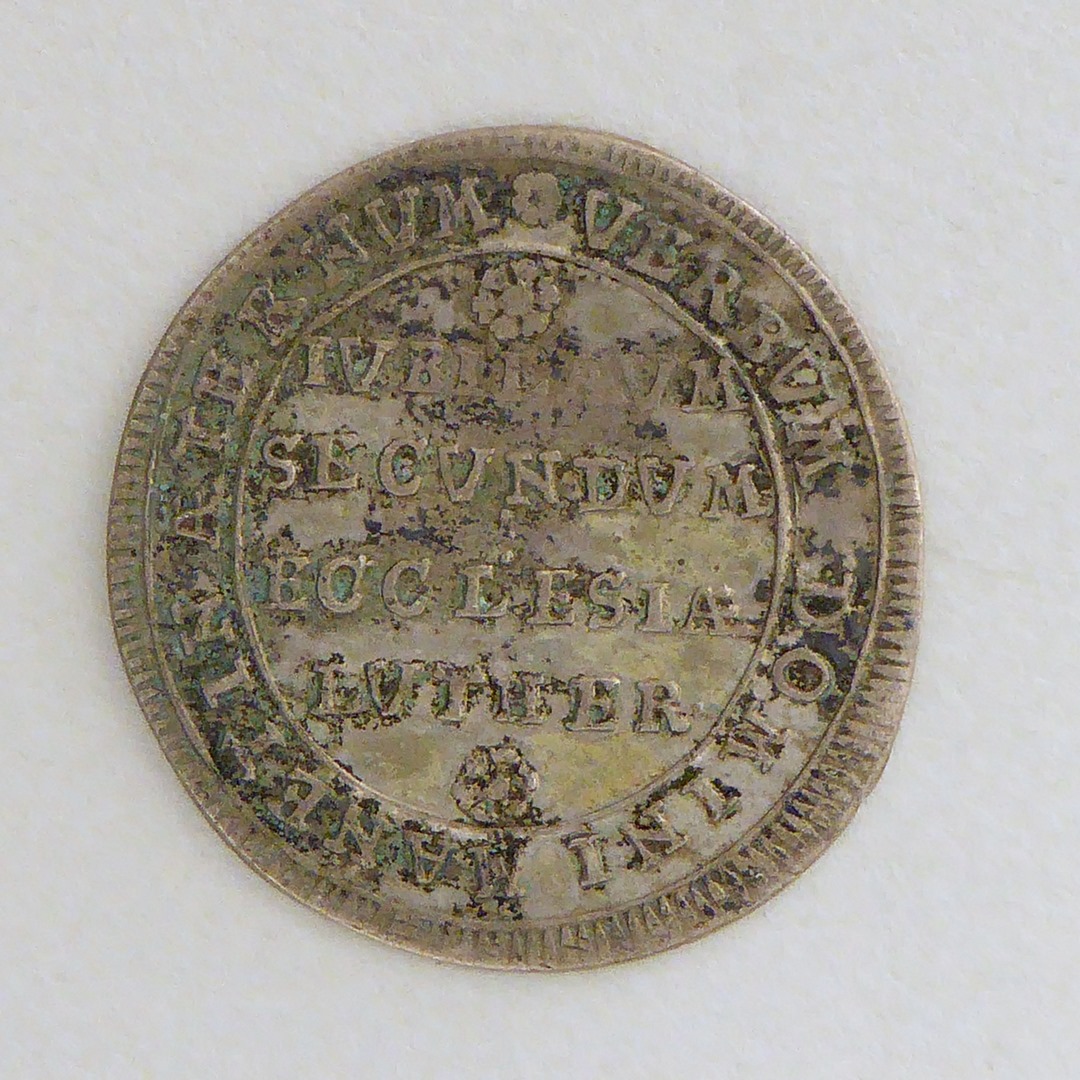 Gedenkpenning tweede eeuwfest Lutherse kerk Hessen, kz. "Verbum Domini manet ..."