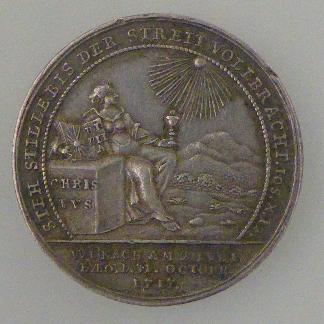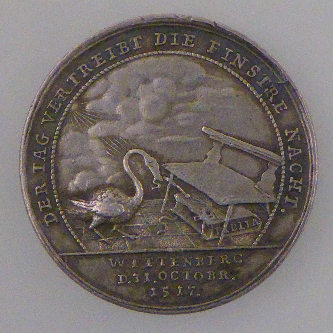 Penning met vrouw met kelk en bijbel, met "Wunsch am 2. ... vollbracht Ios.x.12", kz. zwaan en bijbel