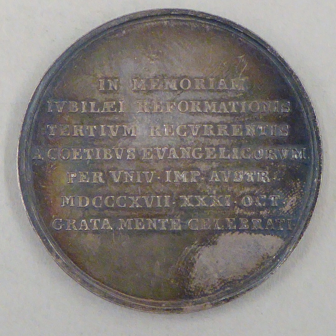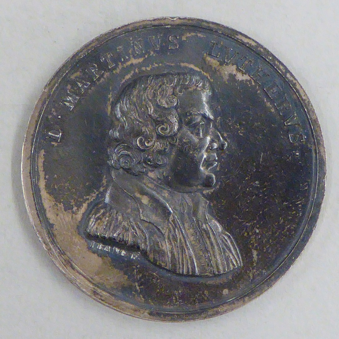 Penning met portret Luther, kz. "In memoriam iubilaei...grata mente celebrati"