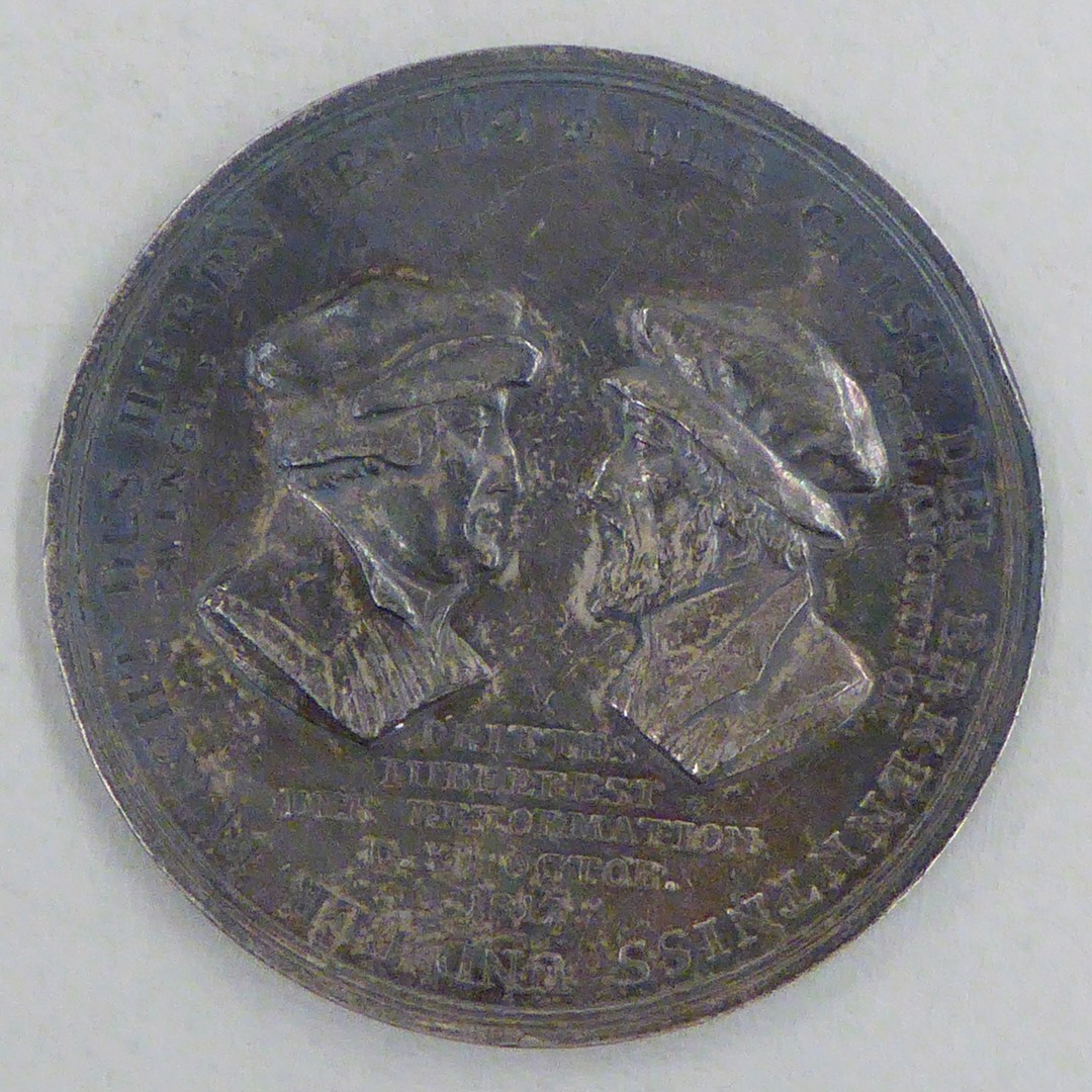 Penning met portret Luther, met "Doctor Martin Luther ...", kz. Zwingli, Melanchton
