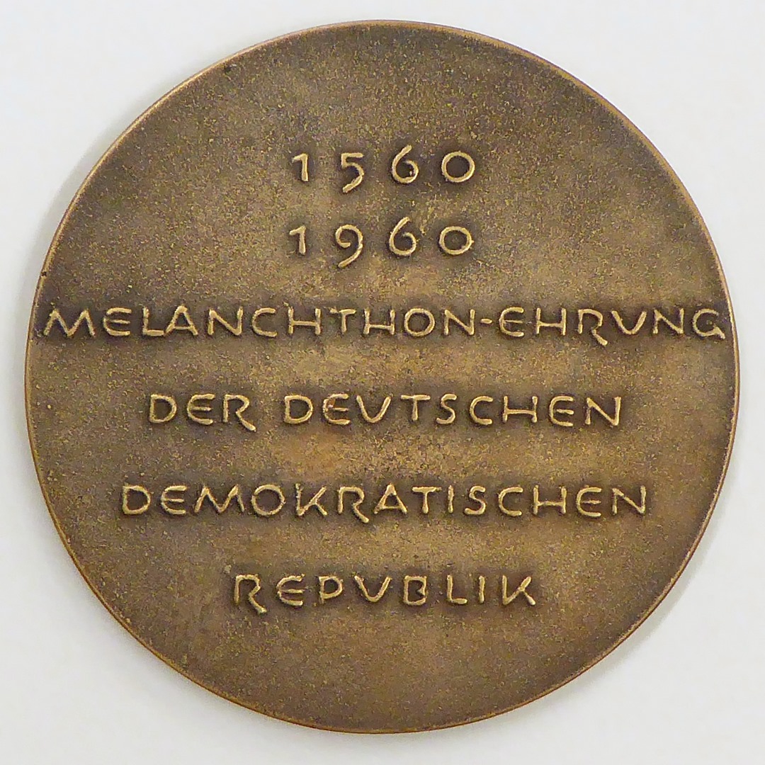 Penning met portret van Melanchton en zijn naam "Philipp Melanchthon", kz. "1560-1960 Melanchton-ehrung ... Republik"