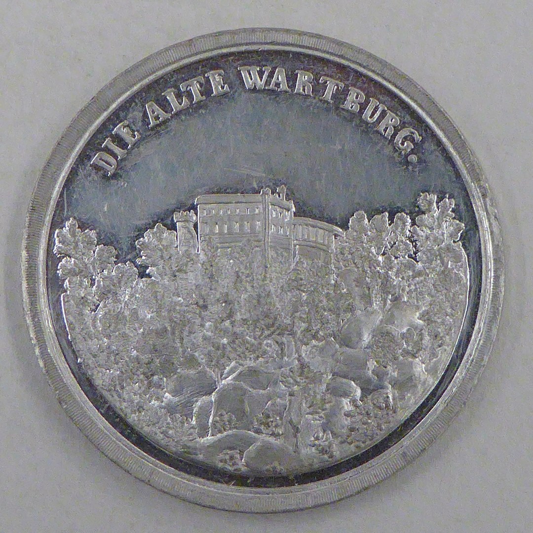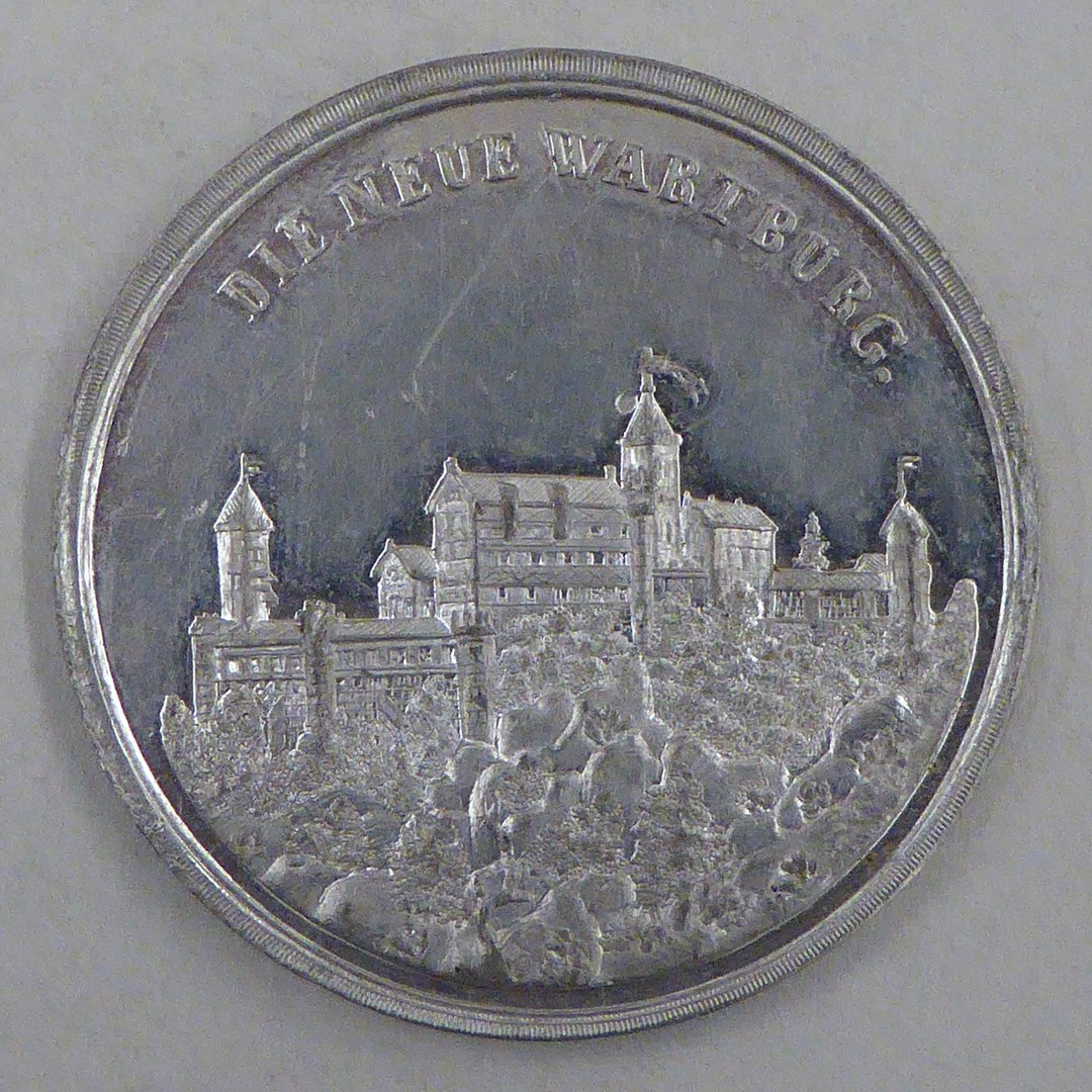 Penning met "Die alte Wartburg", kasteel, kz. met "Die neue Wartburg", kasteel