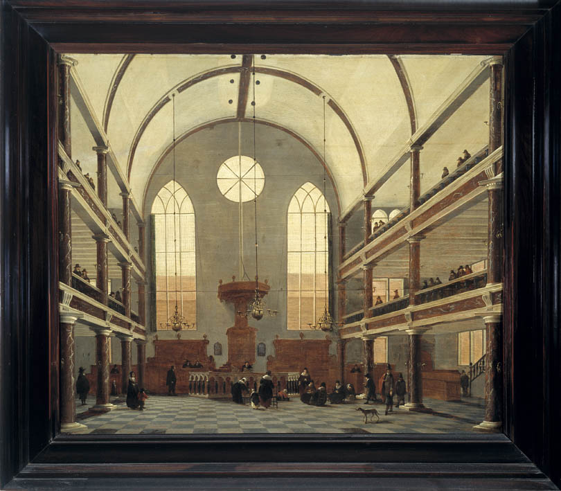 Interieur van de remonstrantse kerk aan de Vissersdijk te Rotterdam