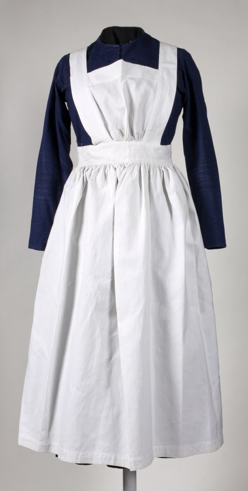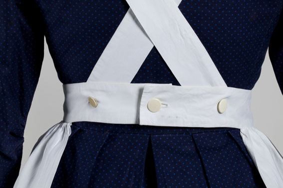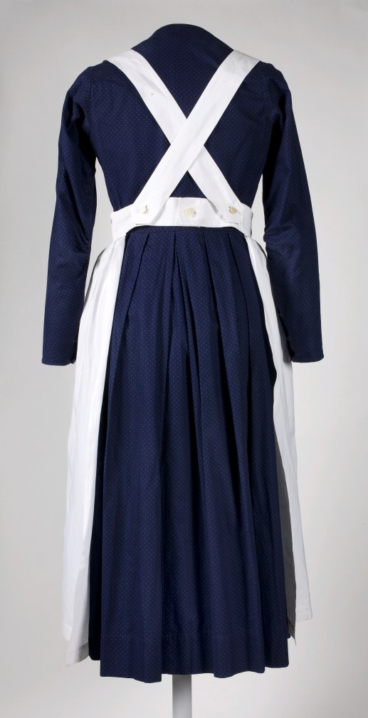 Diakonessenkleding: gevoerde jurk met Bielefelder stippel, blauw