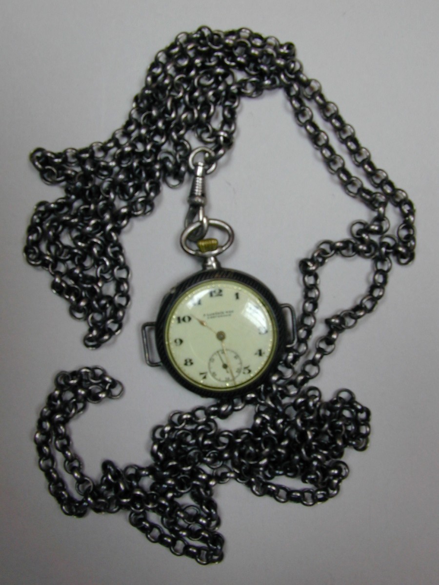 Diakonessenkleding: zilveren horloge aan ketting