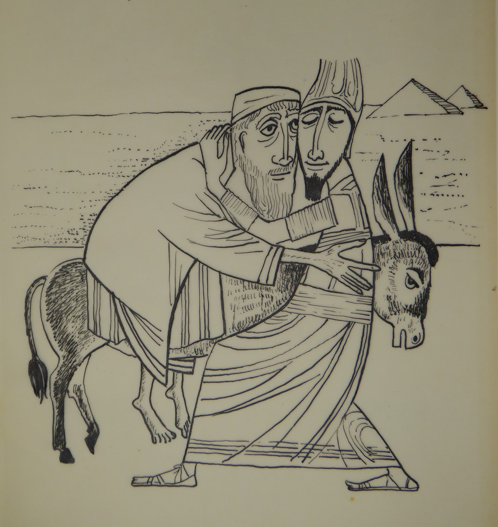 Ontwerp bijbelillustratie Mozes ontmoet zijn vader in Egypte