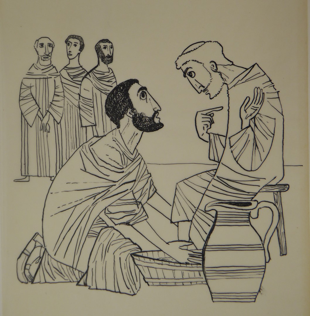 Ontwerp bijbelillustratie voetwassing der apostelen