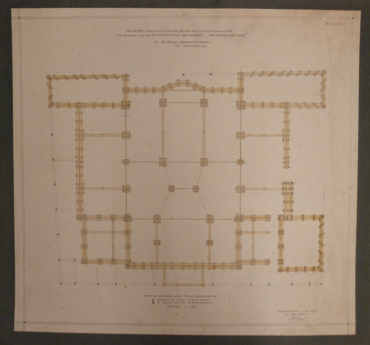 Ontwerp kerk Gerard Brandtstraat te Amsterdam: plattegrond der paalfundeering