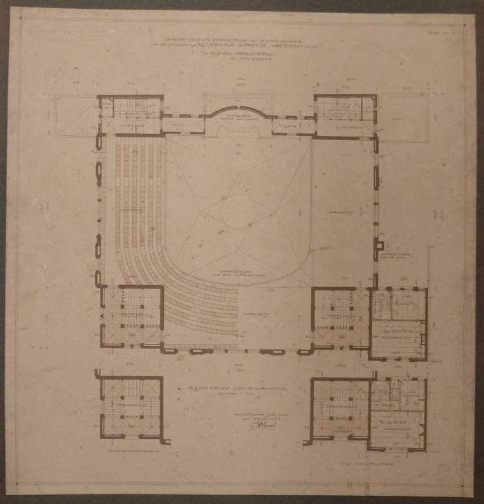 Ontwerp kerk Gerard Brandtstraat te Amsterdam: plattegrond eerste verdieping