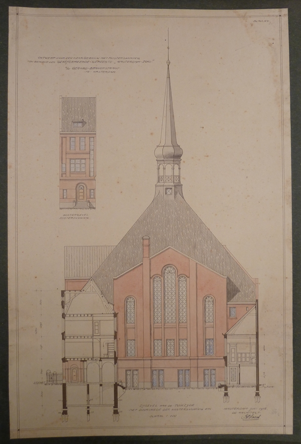 Ontwerp kerk Gerard Brandtstraat te Amsterdam: zijgevel aan de tuinzijde