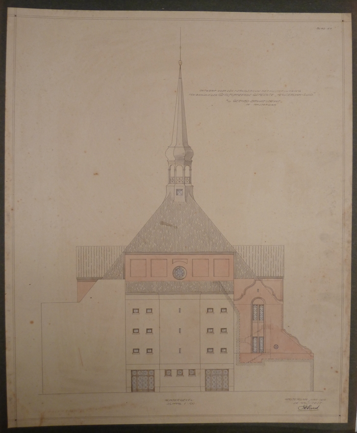 Ontwerp kerk Gerard Brandtstraat te Amsterdam: achtergevel