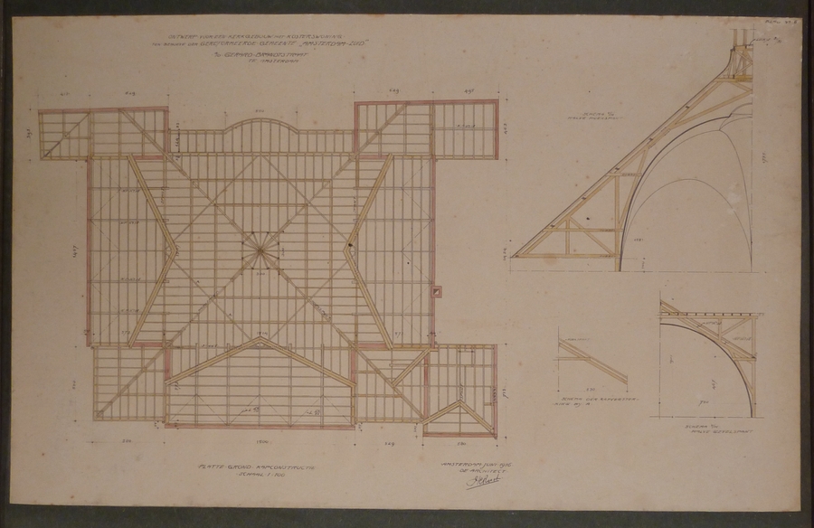 Ontwerp kerk Gerard Brandtstraat te Amsterdam: plattegrond kapconstructie