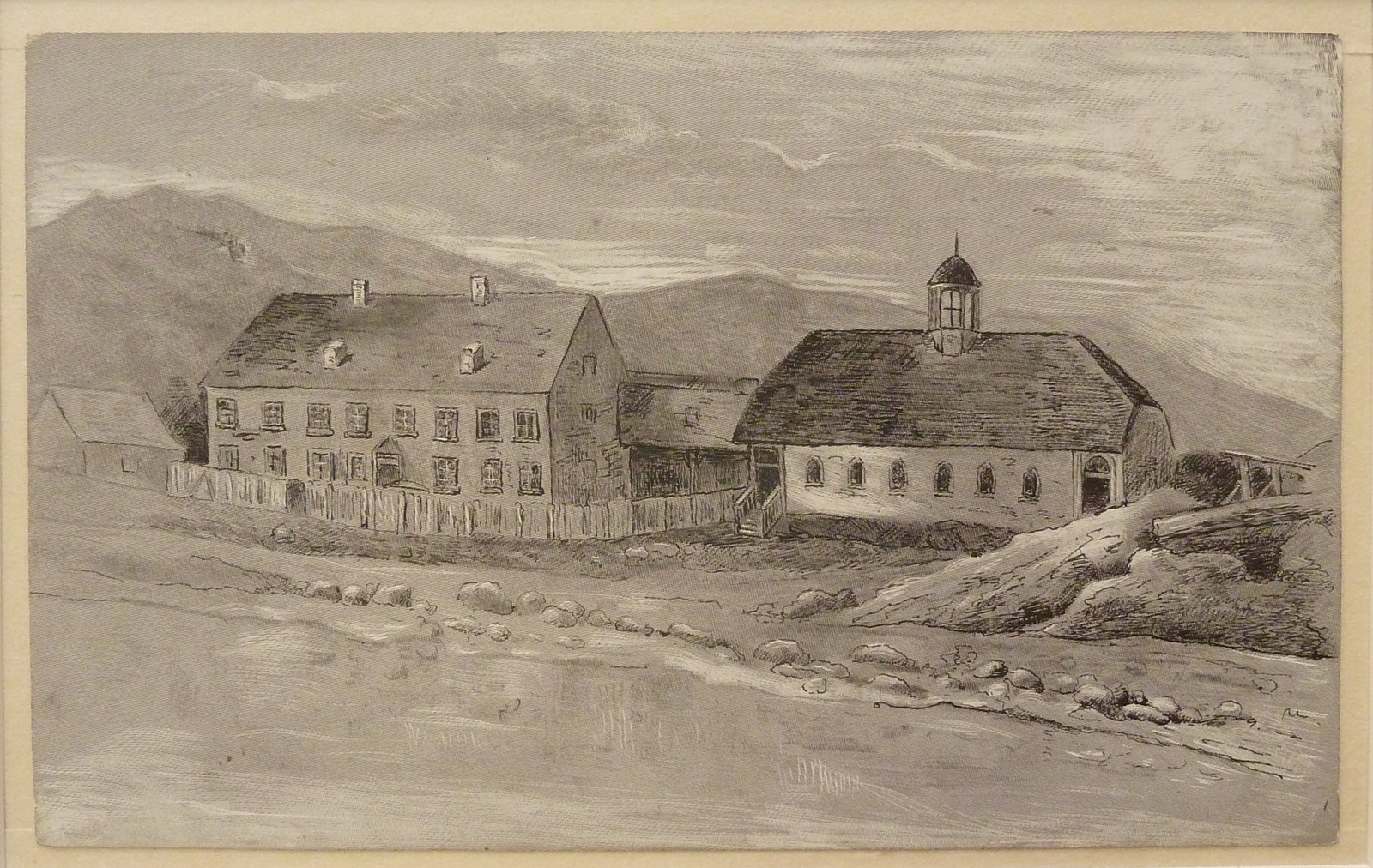 Serie tekeningen voor boeken van Callenbach: zendingshuis op Labrador