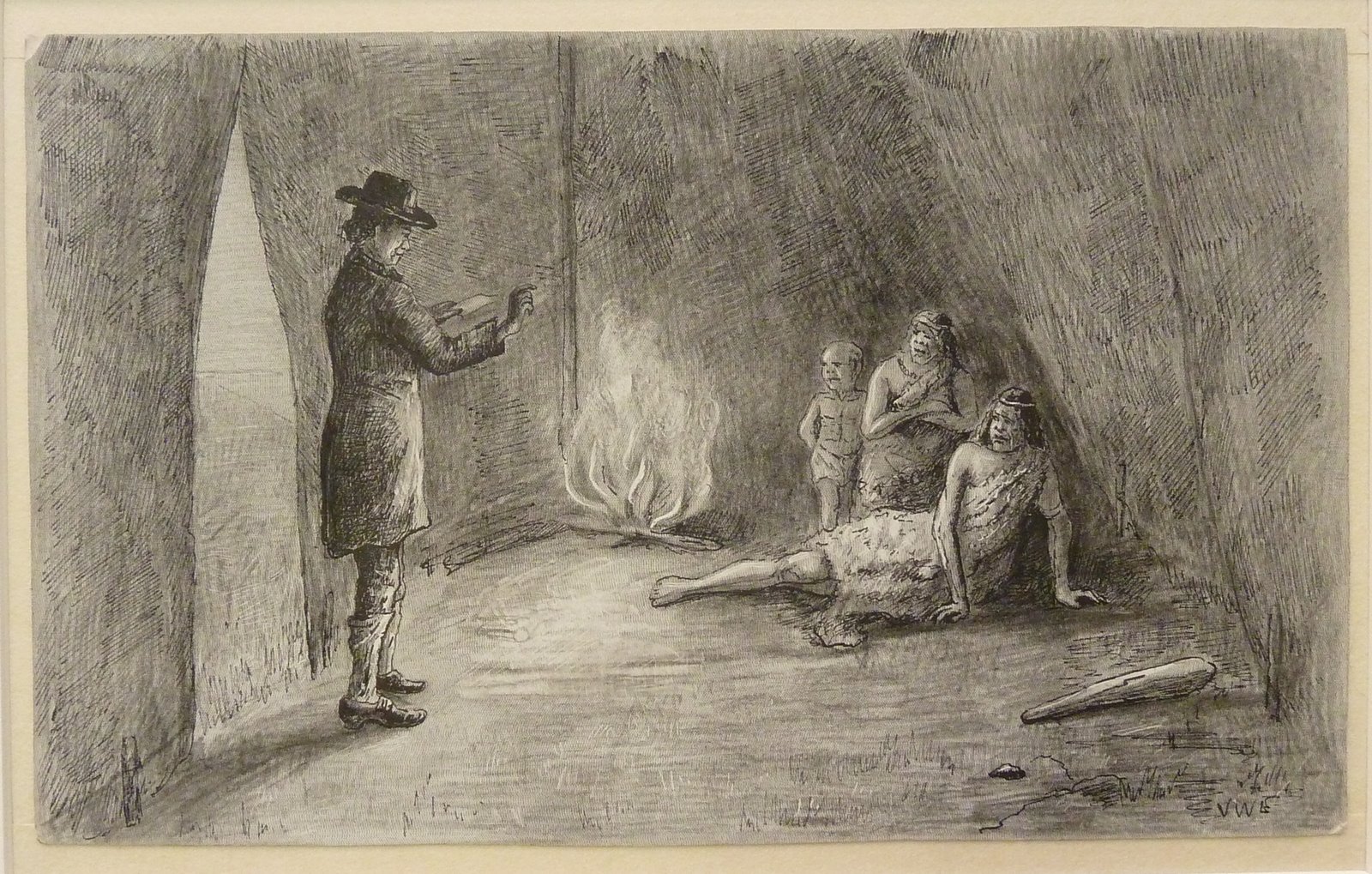 Serie tekeningen voor boeken van Callenbach: zendeling Owen in Patagonië