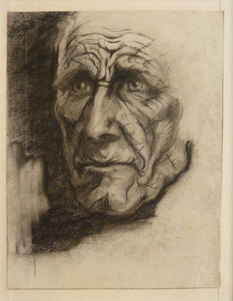 Tekening voor "Warden, een koning" (Callenbach): het gelaat van een oude man