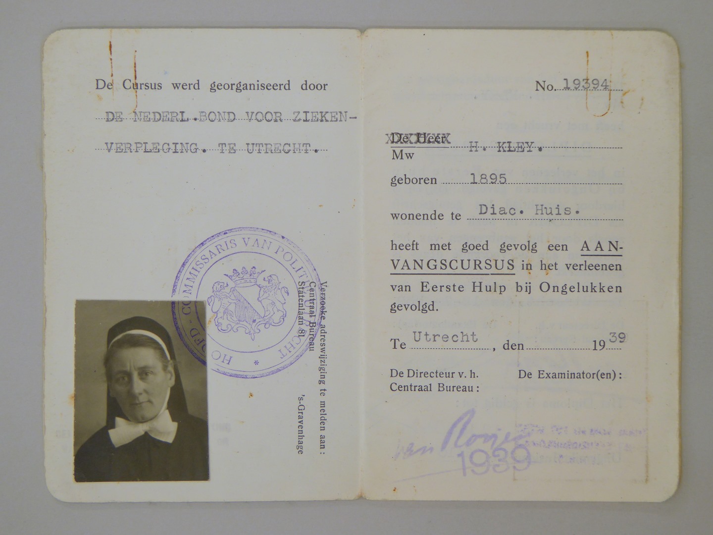 Diploma E.H.B.O. van de diacones Hendrika Kley
