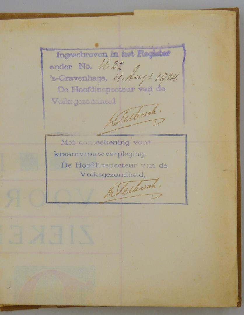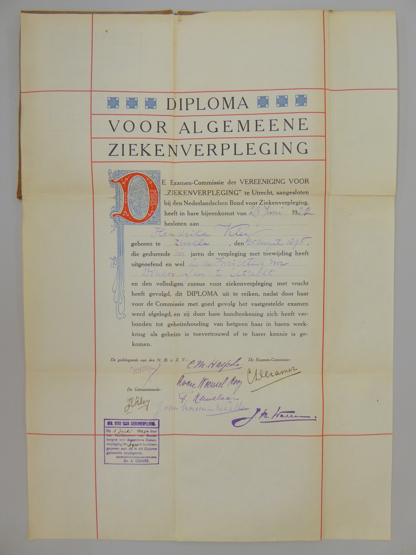 Diploma voor Algemeene Ziekenverpleging N.B.V.Z. van Hendrika Kley, in omslag