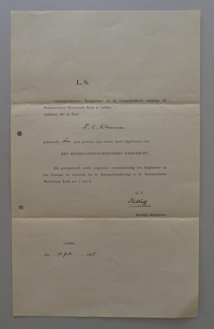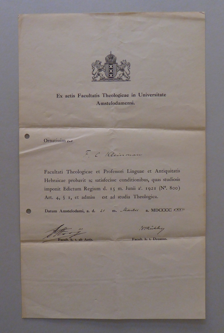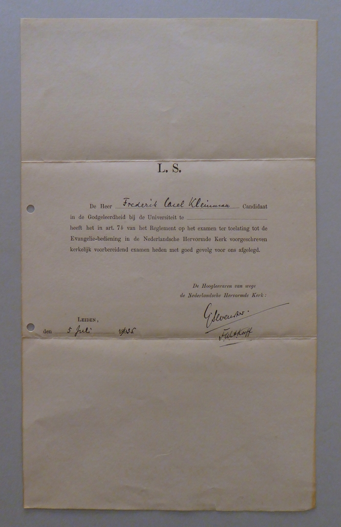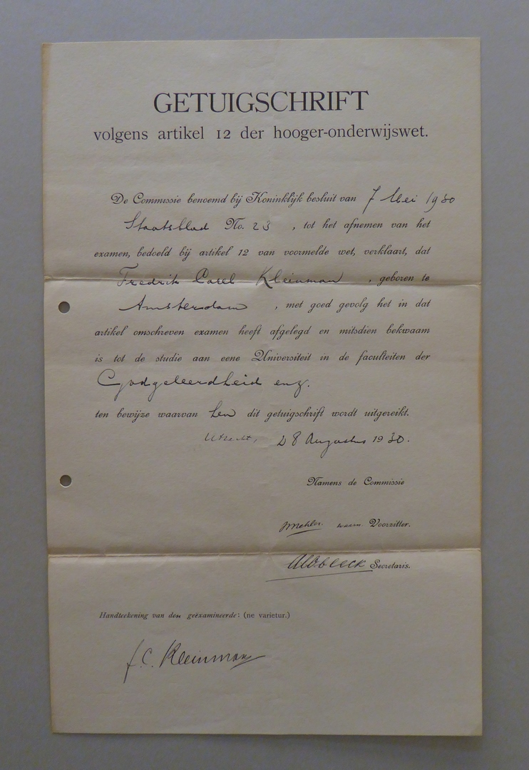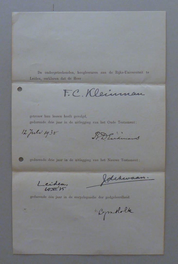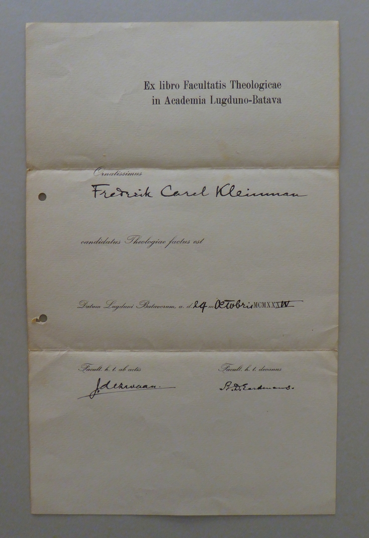 Uit nalatenschap ds. F.C. Kleinman: (academische) getuigschriften (11 stuks)