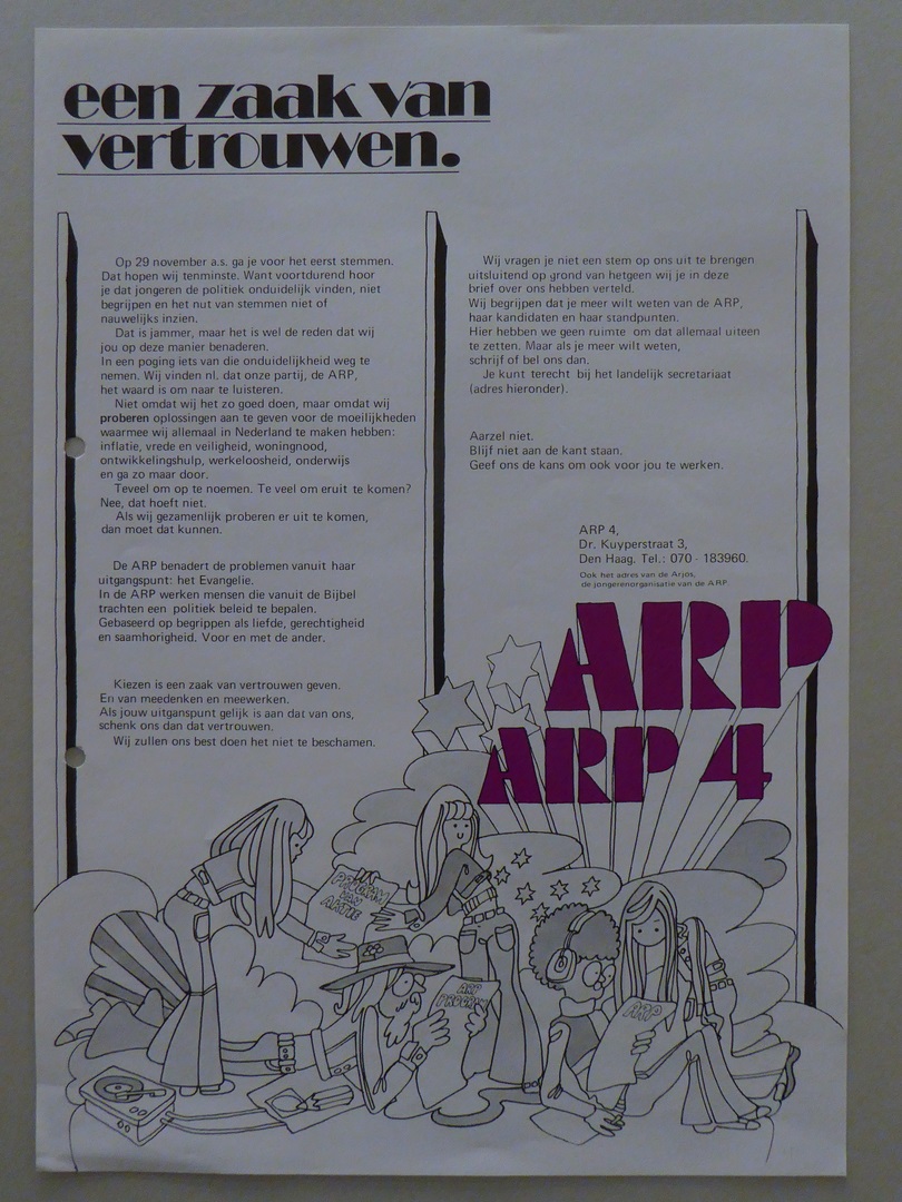 Propagandamateriaal ARP verkiezingscampagne 1972: Folder een zaak van vertrouwen