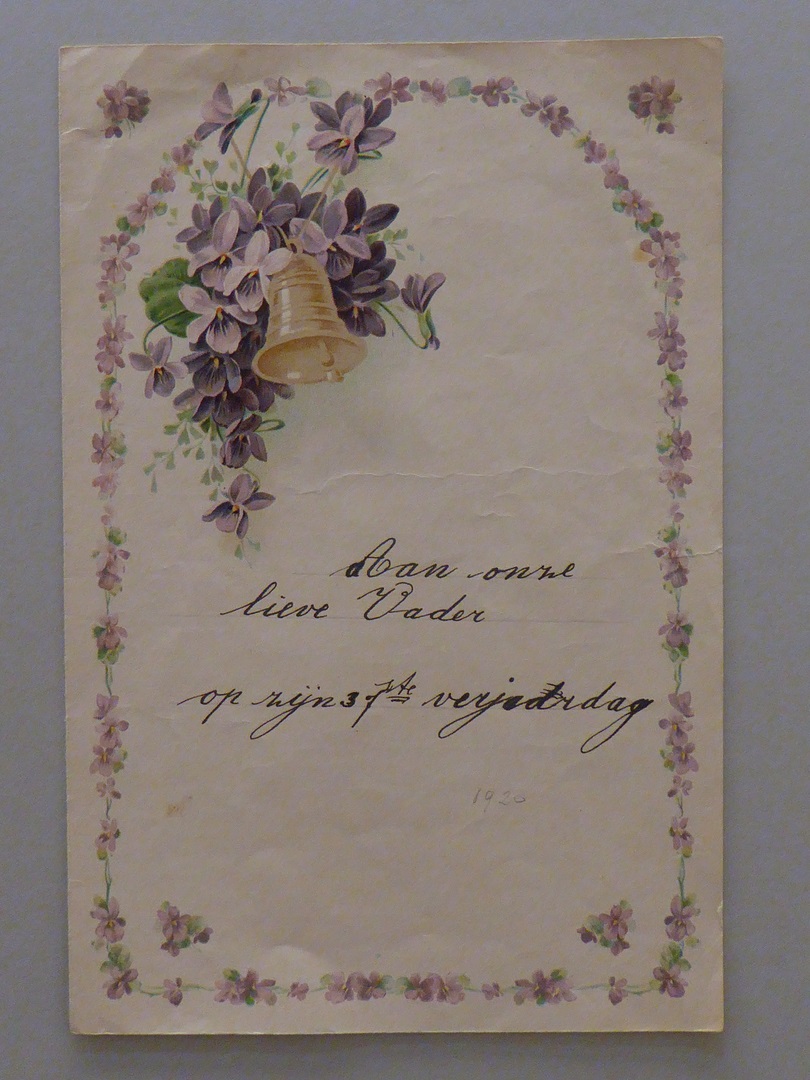 Handgeschreven verjaardagswens "Aan onze lieve Vader op zijn 37e verjaardag"