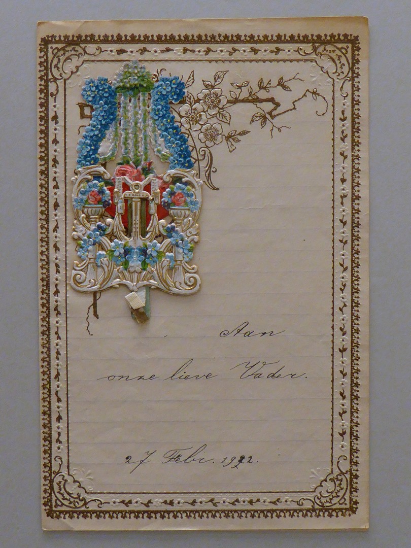 Handgeschreven verjaardagswens "Aan onze lieve Vader op zijn 39e verjaardag"