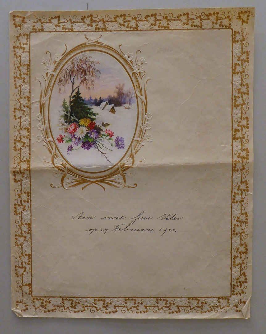 Handgeschreven verjaardagswens "Aan onze lieve vader op 27 Februari 1925"