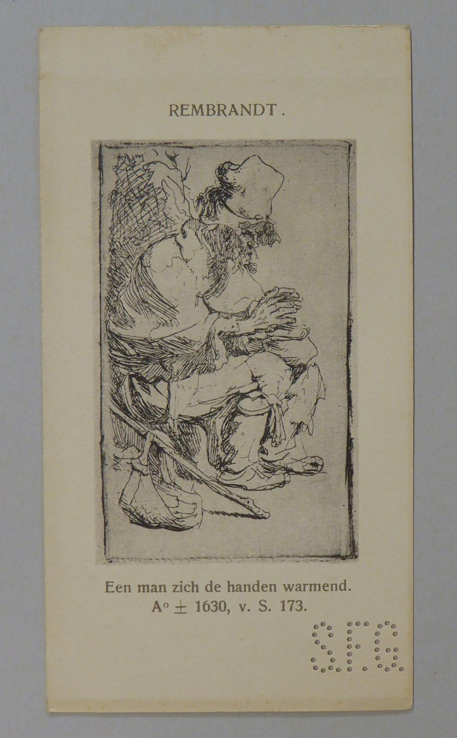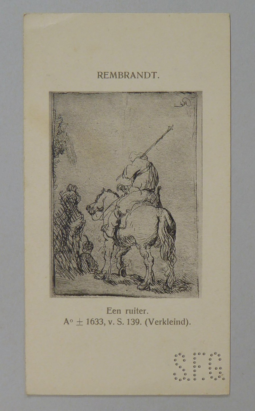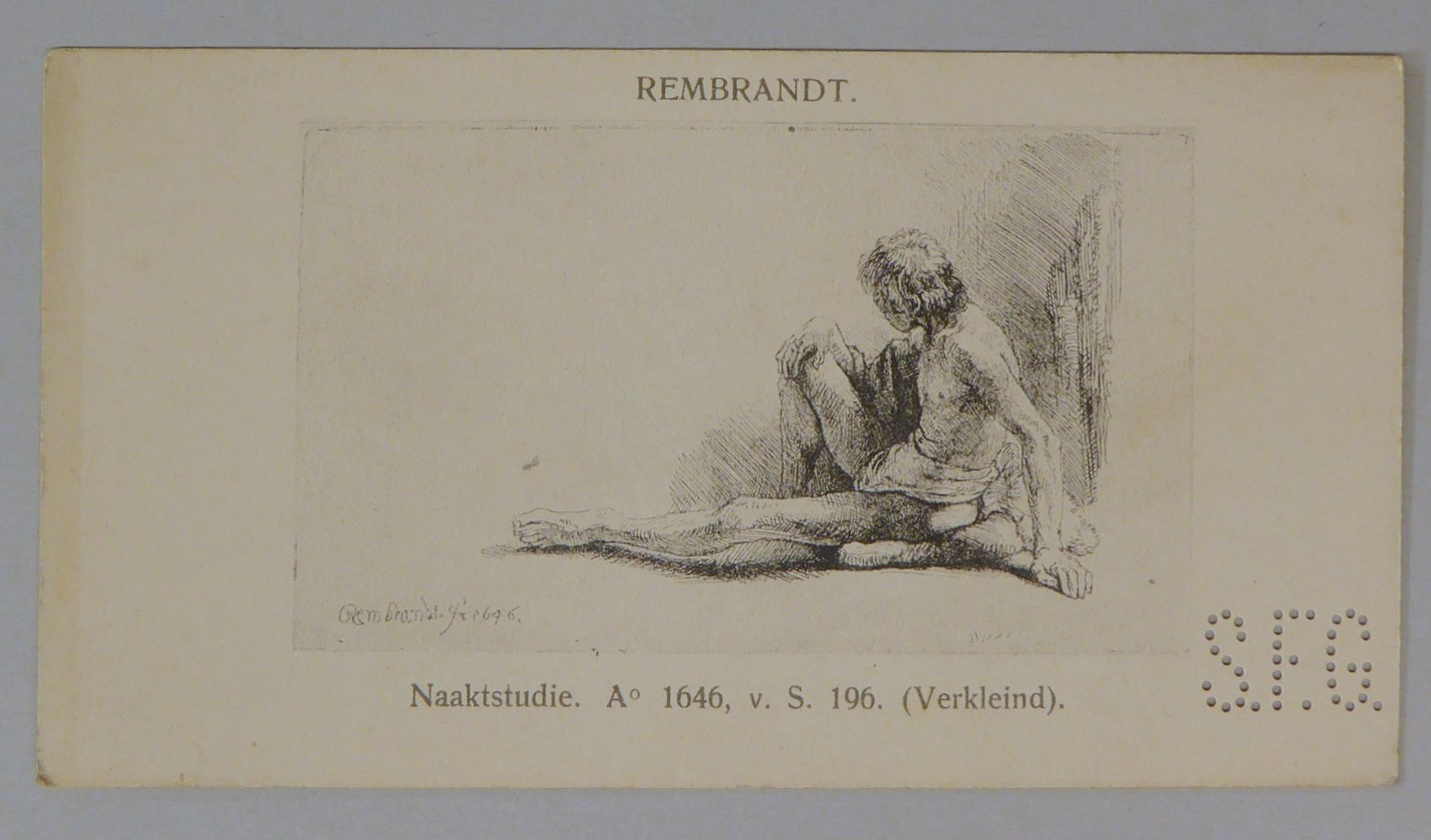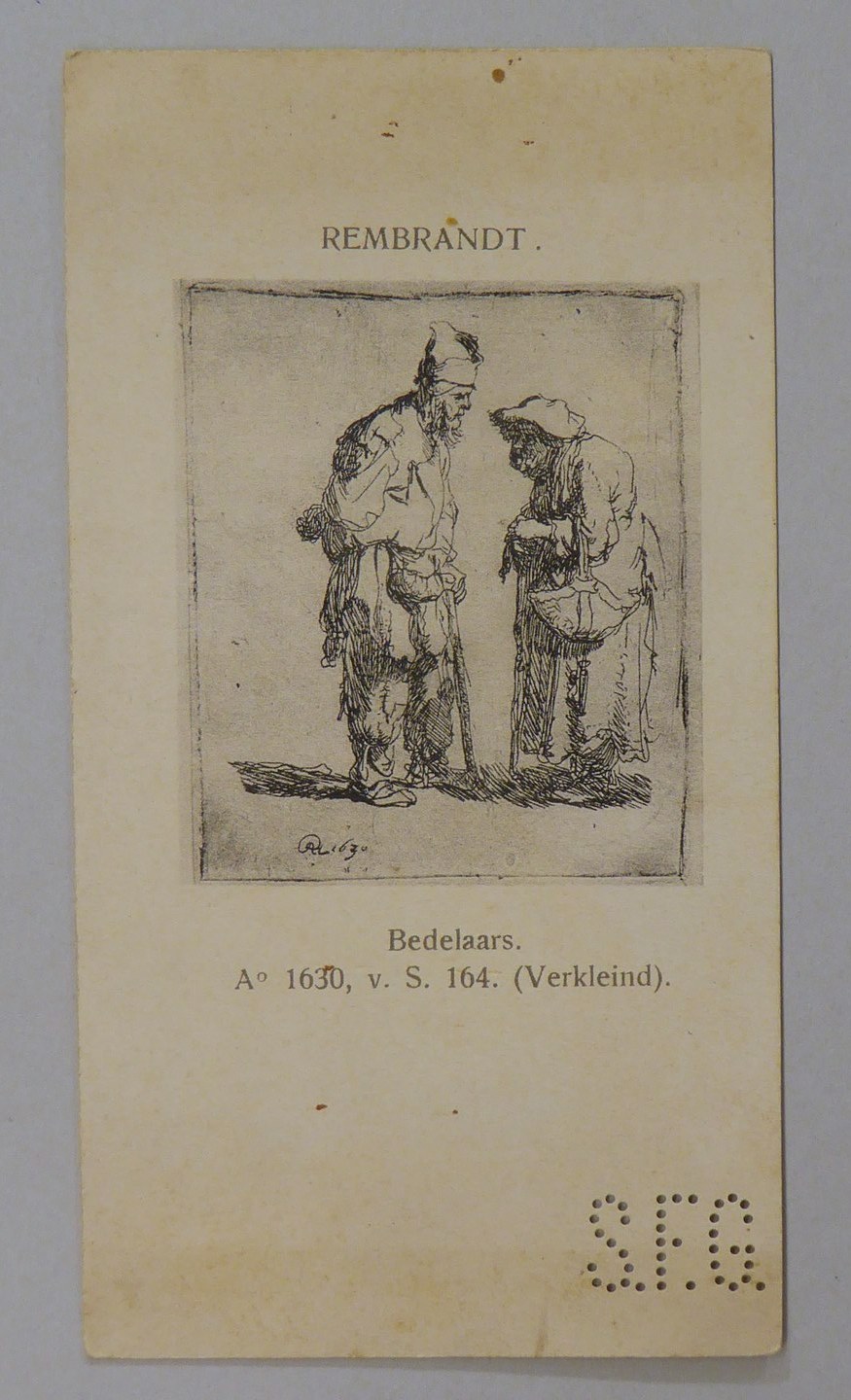 Kavel van 13 kaartjes met reproducties van Rembrandt etsen, met "S.F.G."