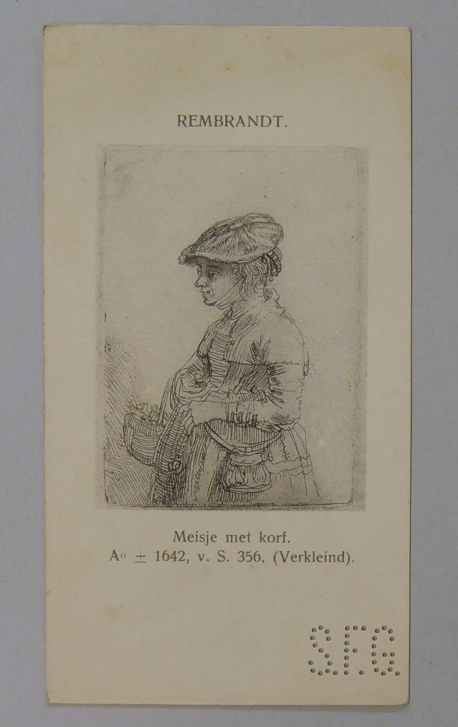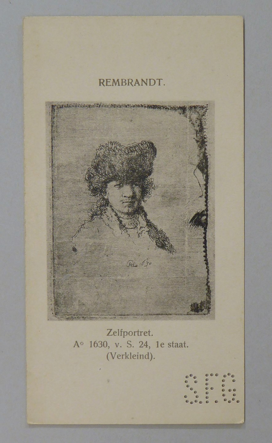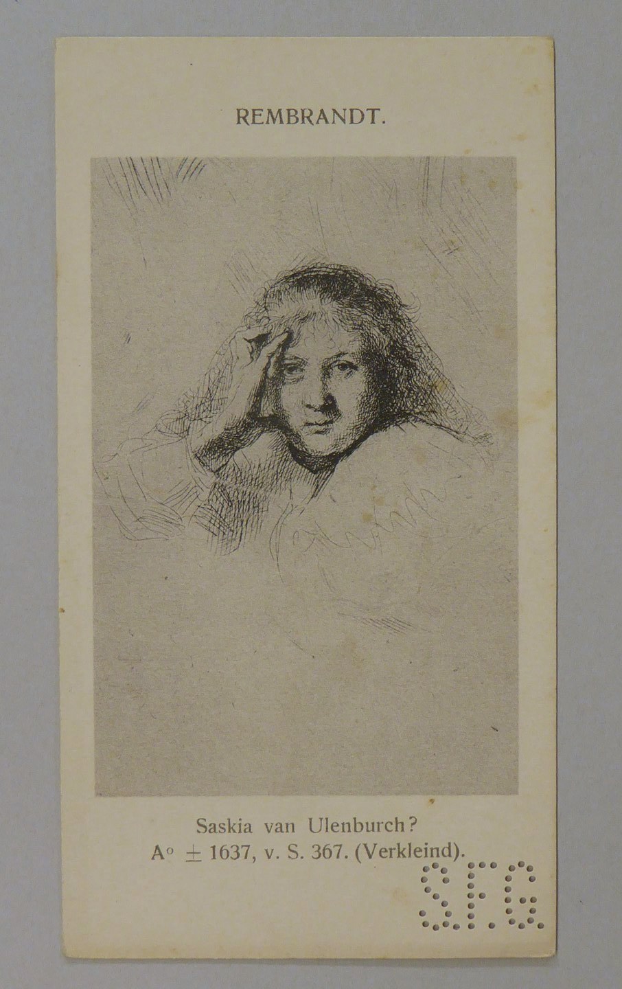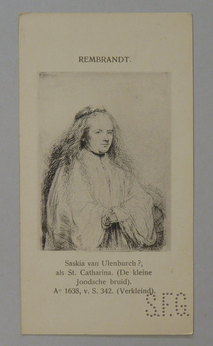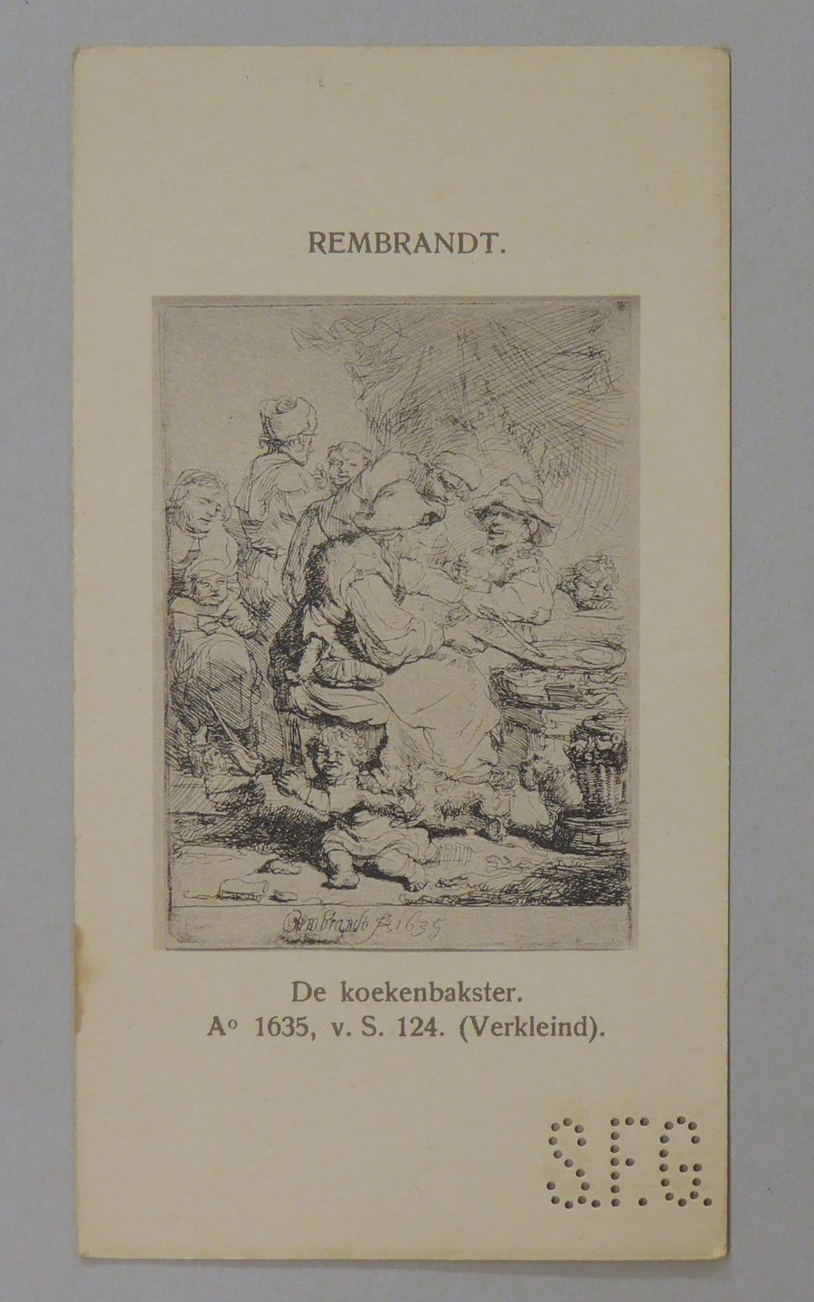 Kavel van 13 kaartjes met reproducties van Rembrandt etsen, met "S.F.G."