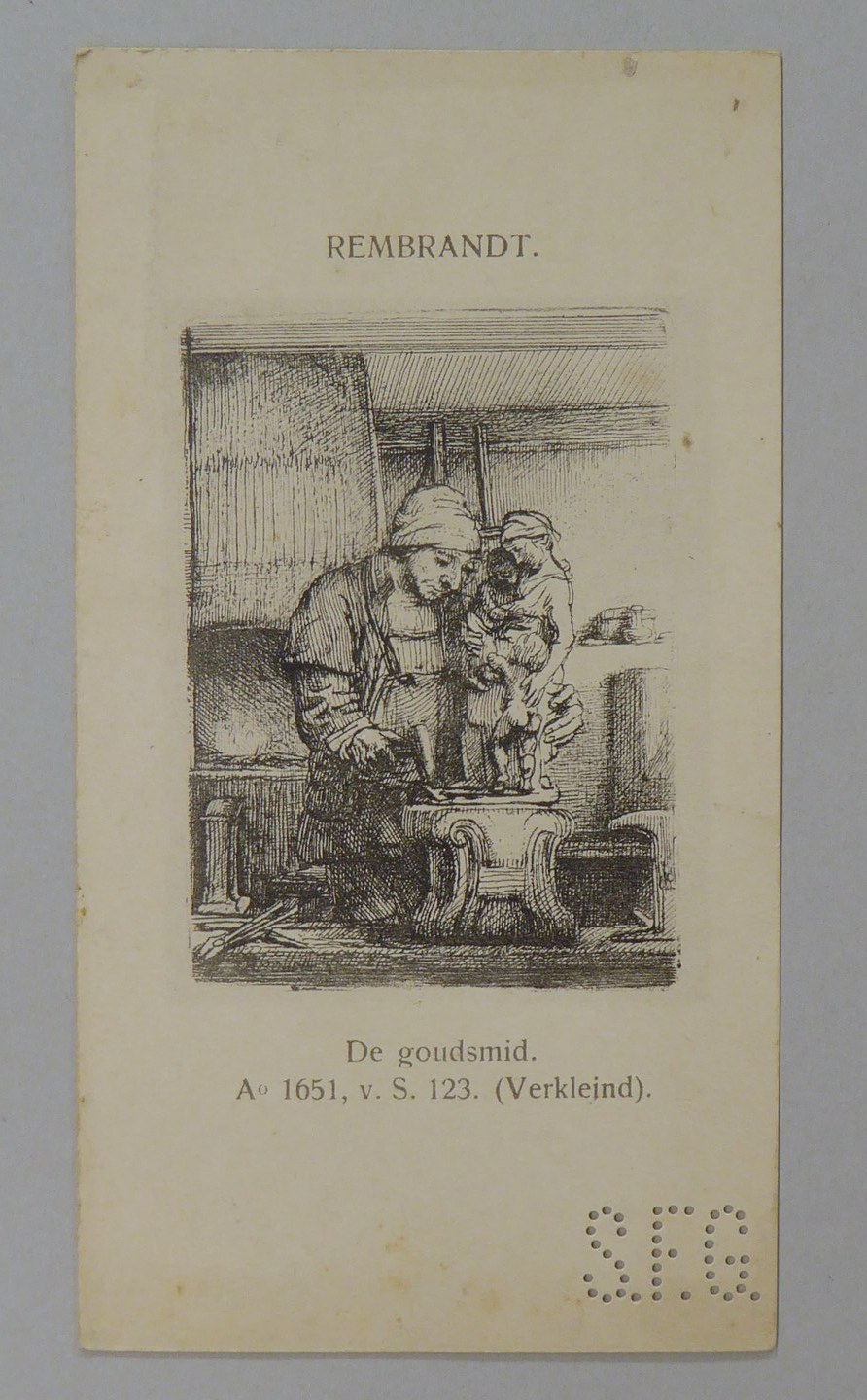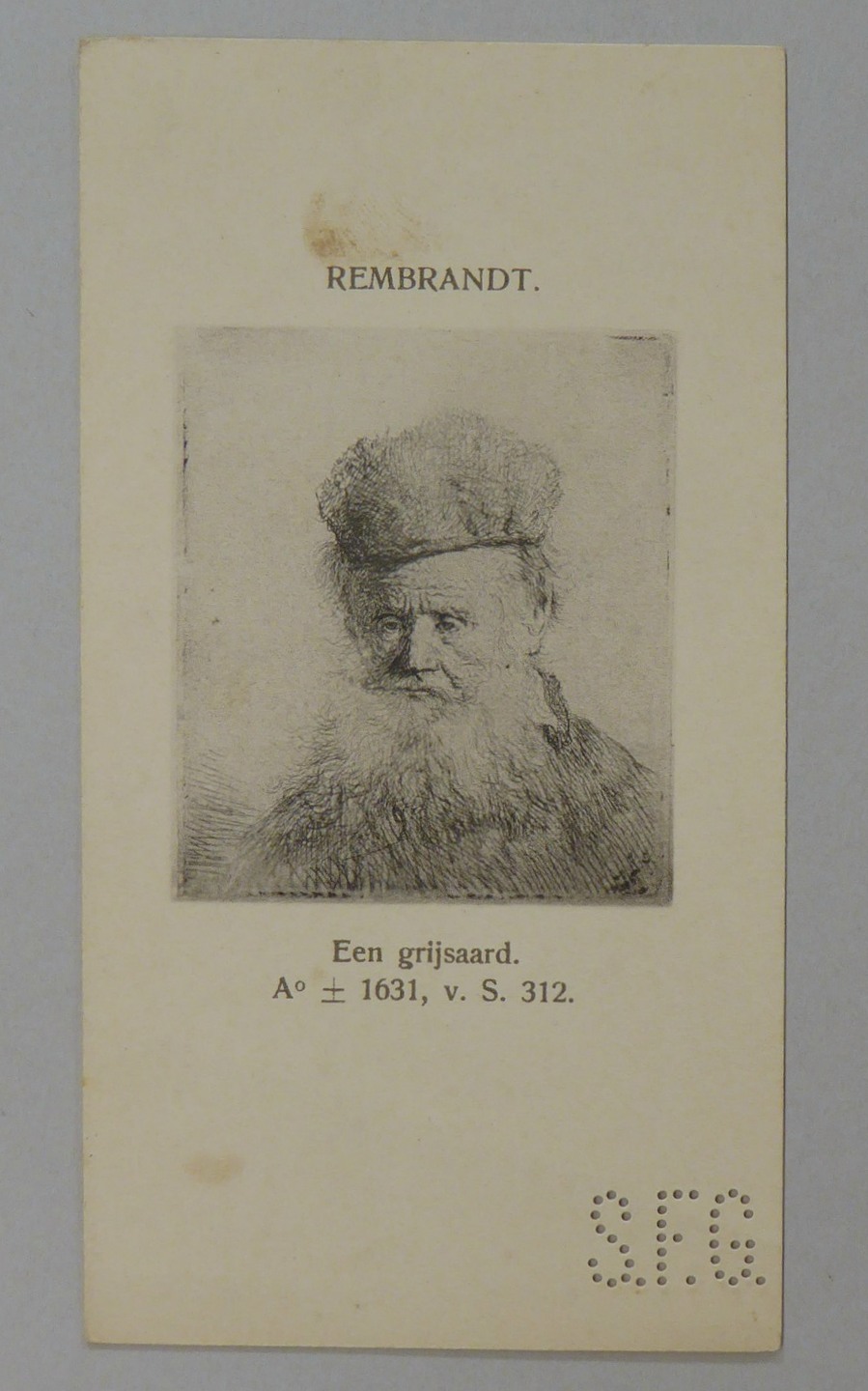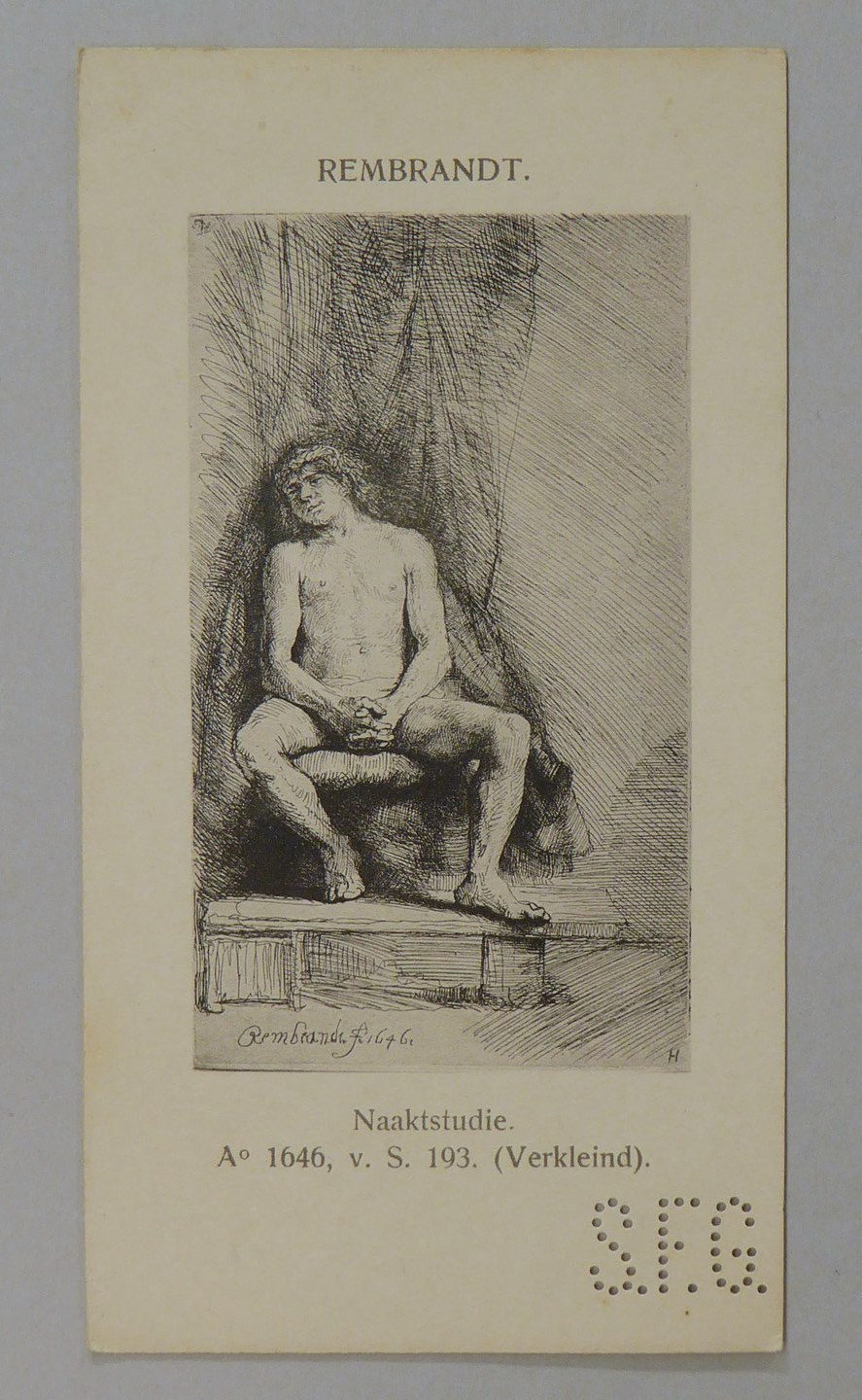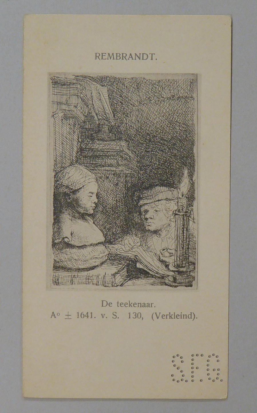 Kavel van 13 kaartjes met reproducties van Rembrandt etsen, met "S.F.G."